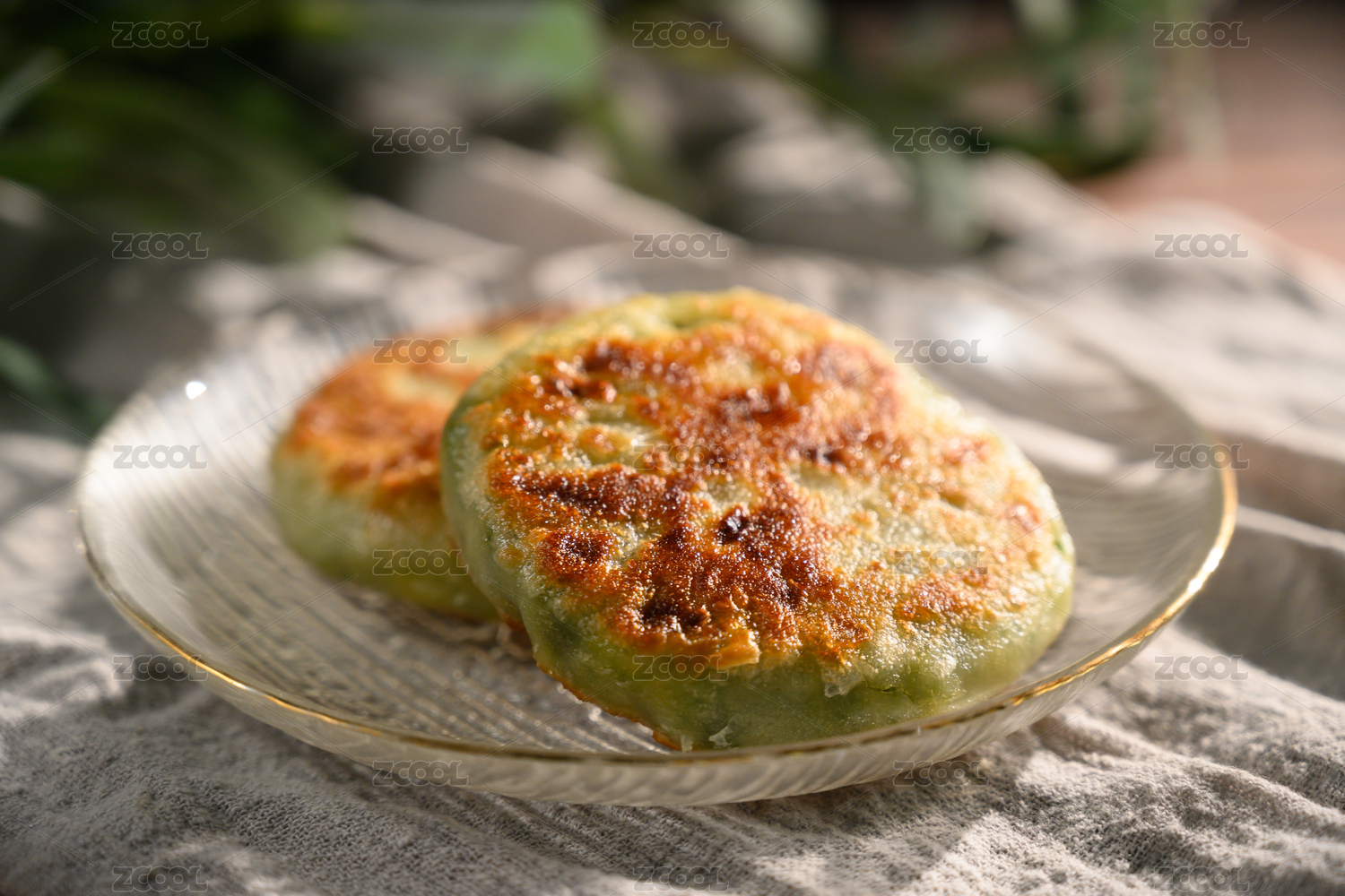 桌面上的盘子里的美味可口的韭菜馅饼