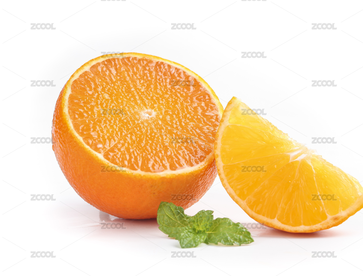 白底上放着切开的红橙