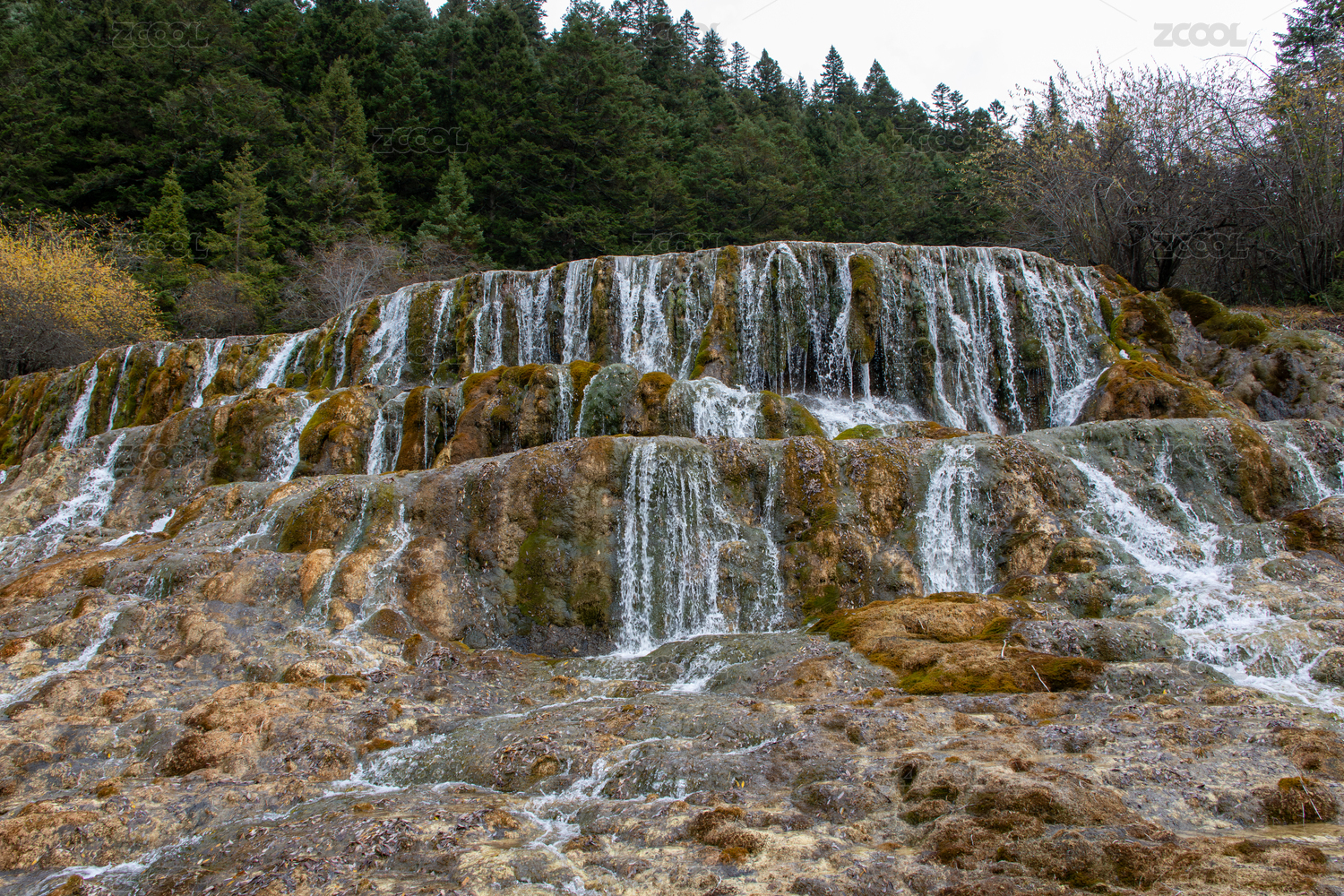 九寨沟秋色,珍珠滩瀑布与红叶秋林