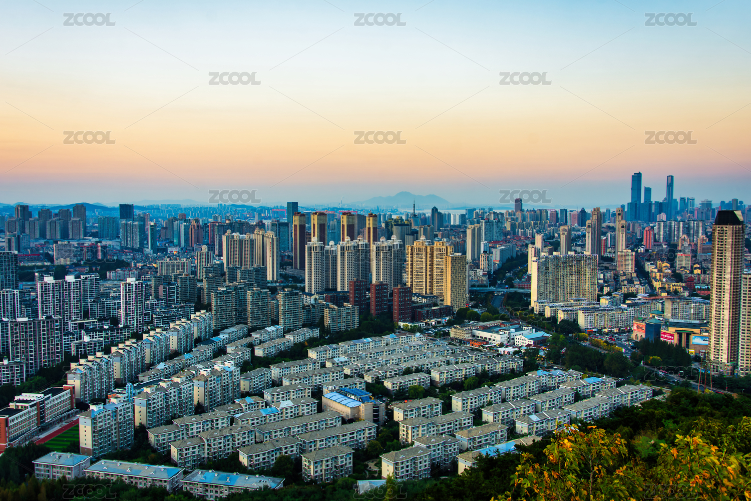 傍晚的辽宁省大连市天际线,摄于富国公园