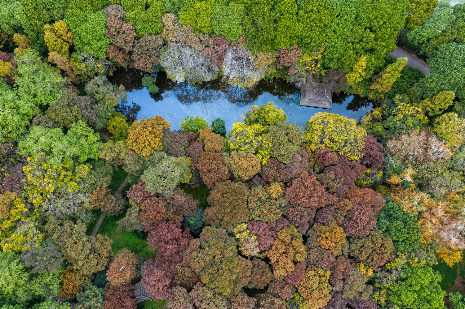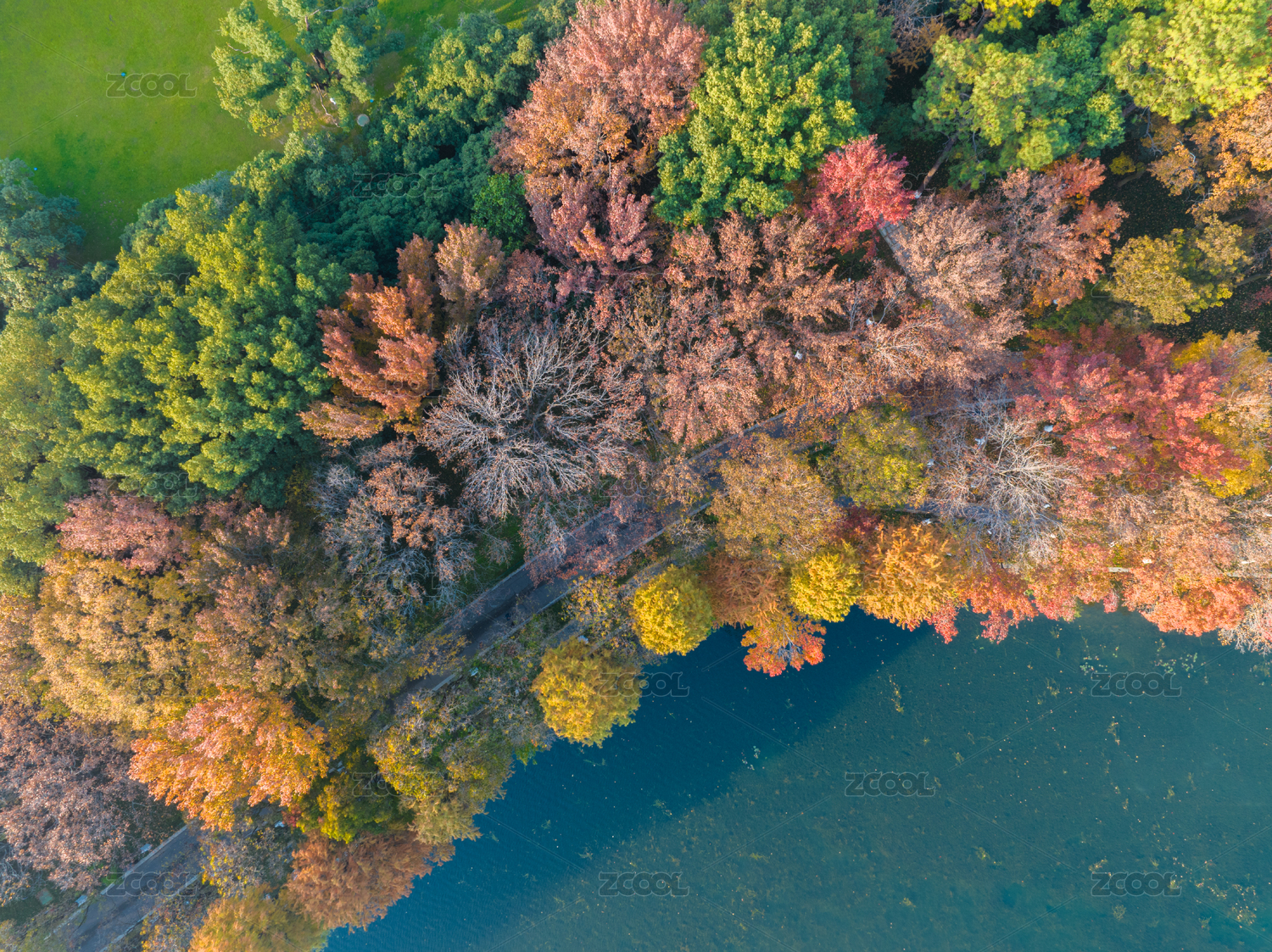 南京明孝陵燕雀湖深秋彩色盘湖光彩叶