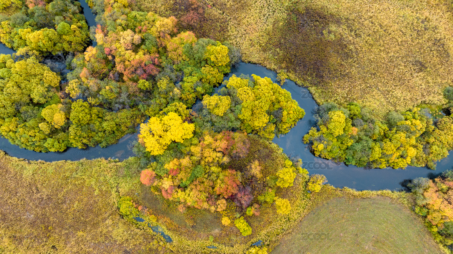 鸟瞰中国内蒙古呼伦贝尔秋天湿地自然景观