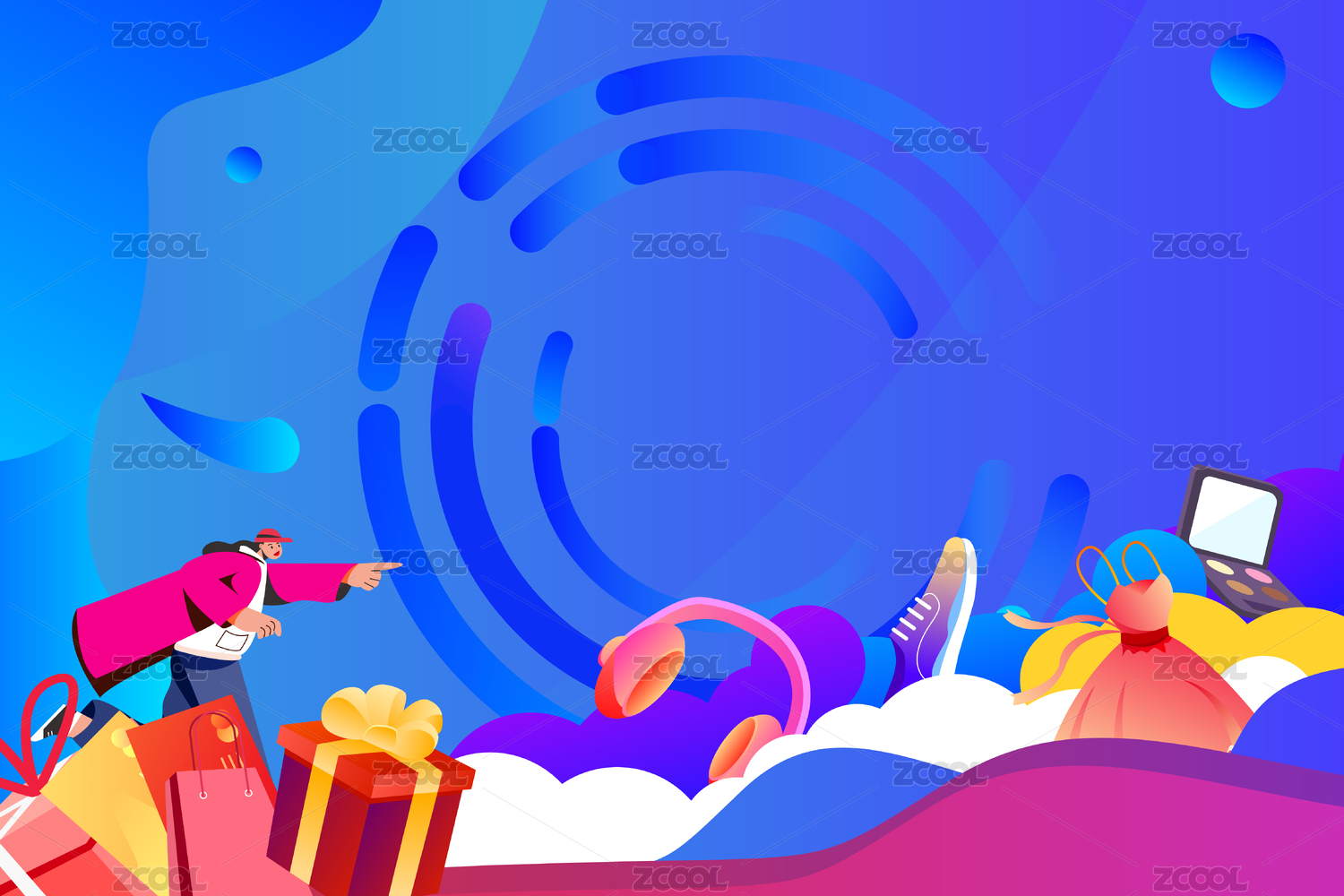卡通手绘女生电商购物网购海报闪屏插画背景