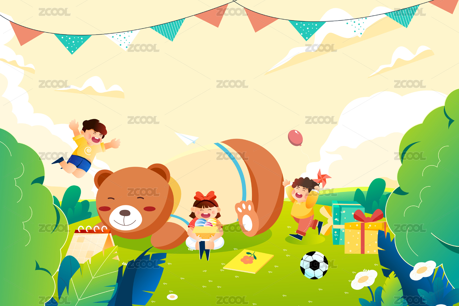 儿童节插画素材七彩乐园
