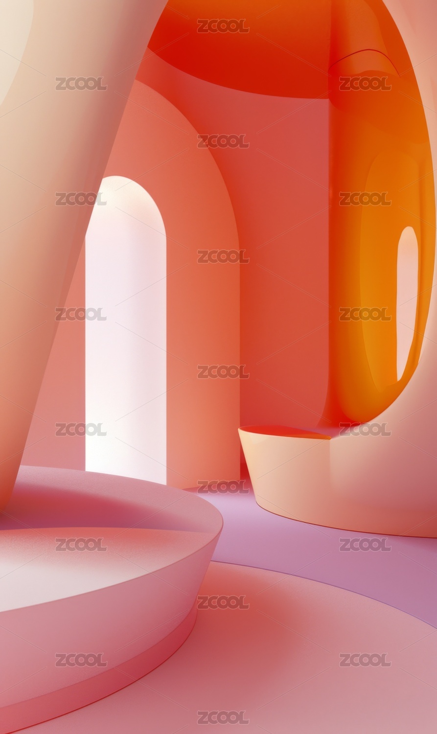 3D,几何,室内,建筑,插画,背景,曲线,几何体,几何建筑,创意