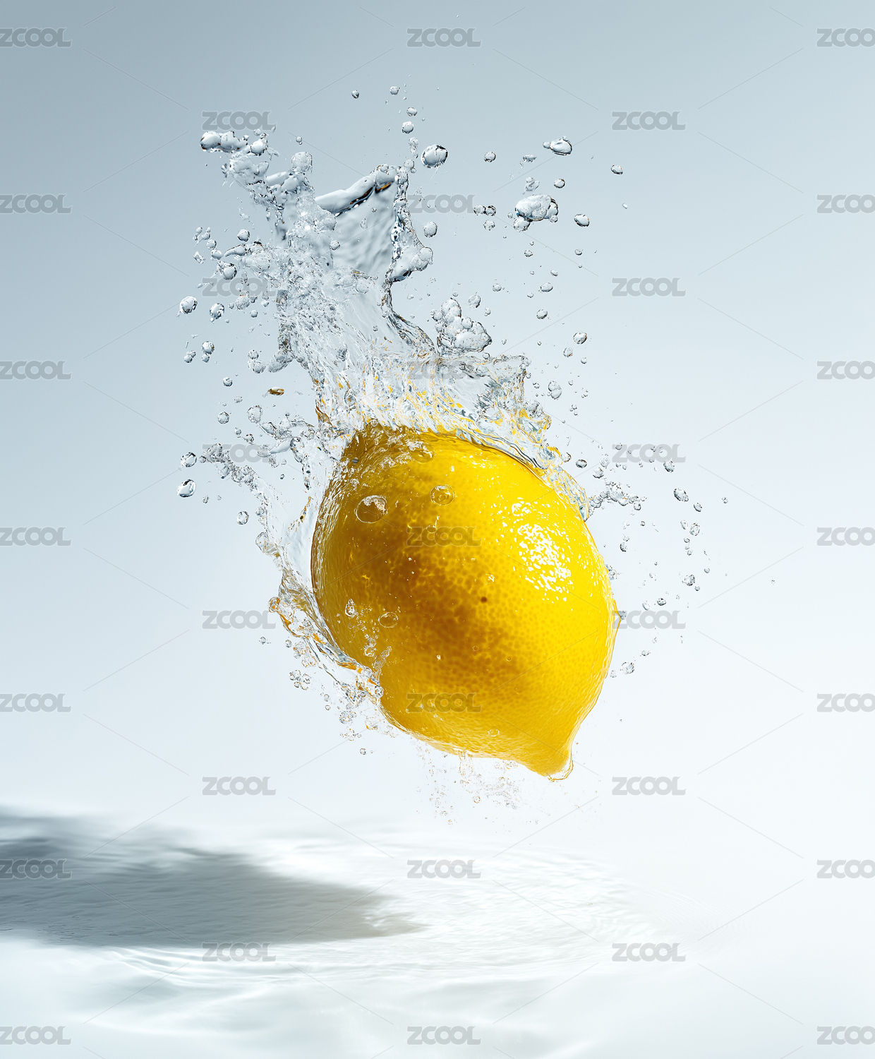 写实立体溅起水花的新鲜柠檬汁水四溢