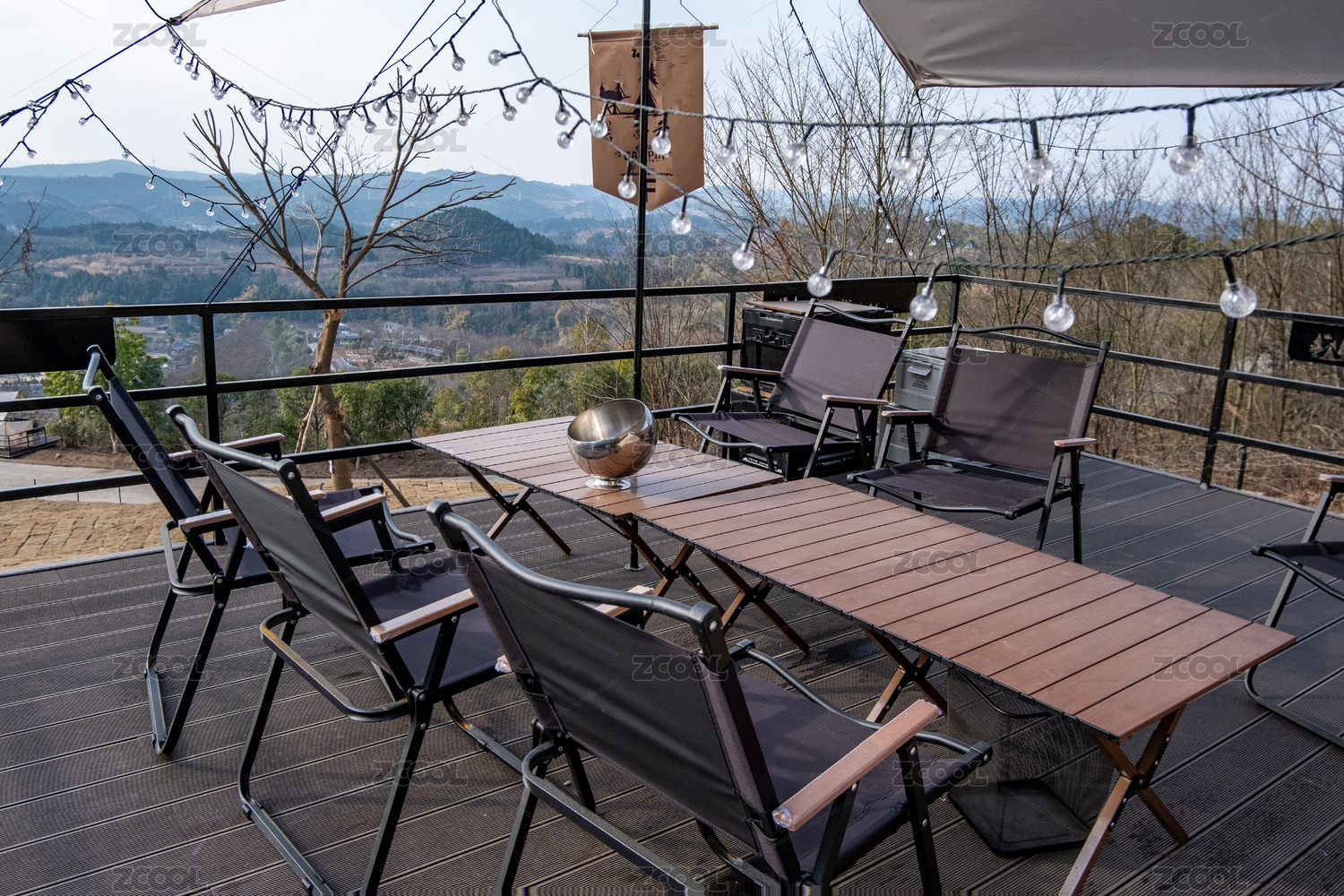 中国深圳大鹏东冲海岸边的休闲观景桌椅