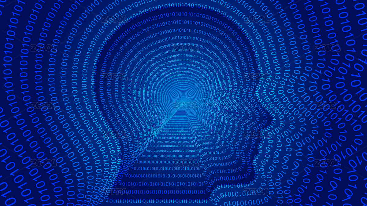 由数字01组成螺旋状互联网大数据背景。