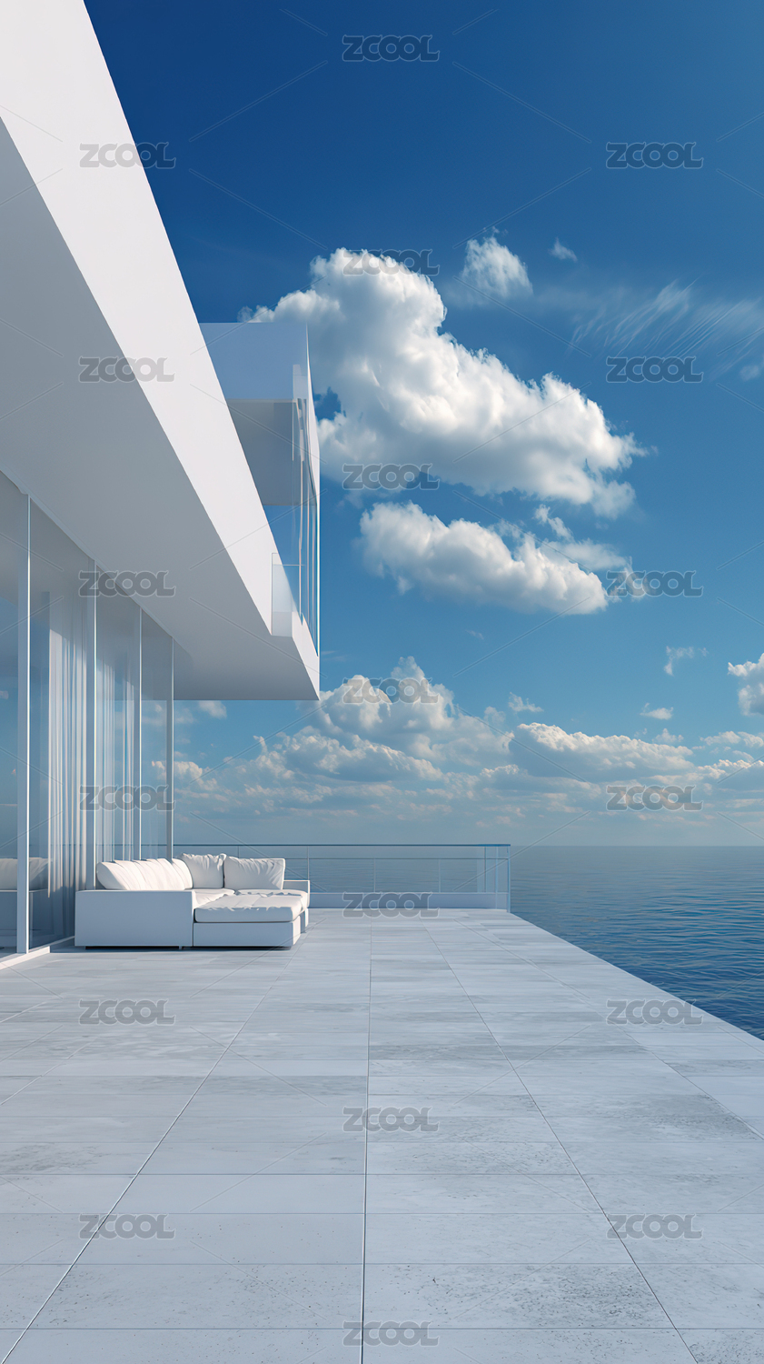 别墅,现代,现代建筑,建筑,外立面,海景,海滨,砖地,天空,干净