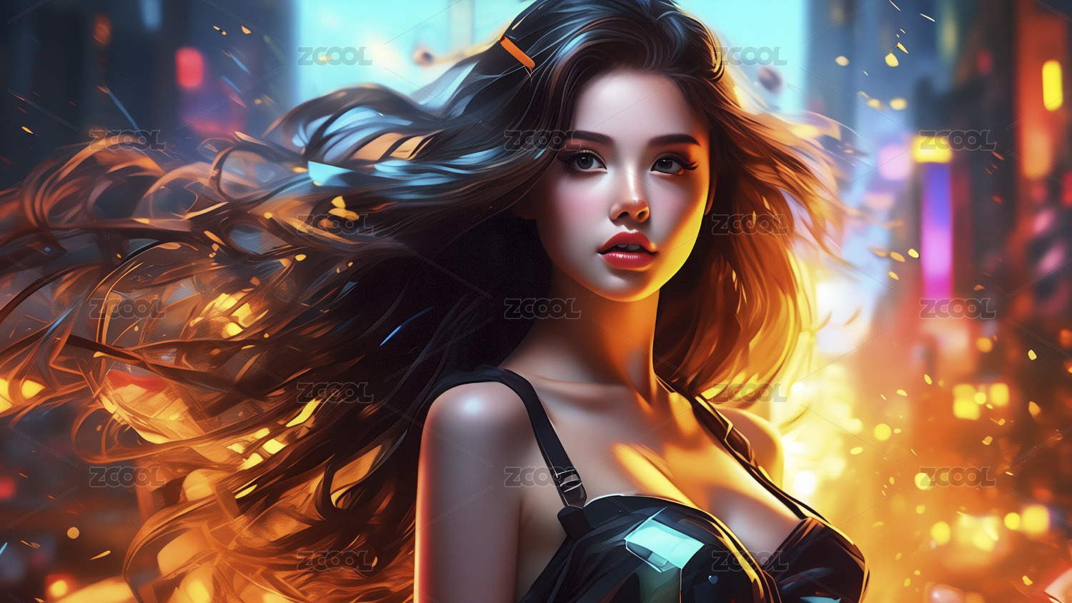 未来主义二次元动漫长发女生形象场景