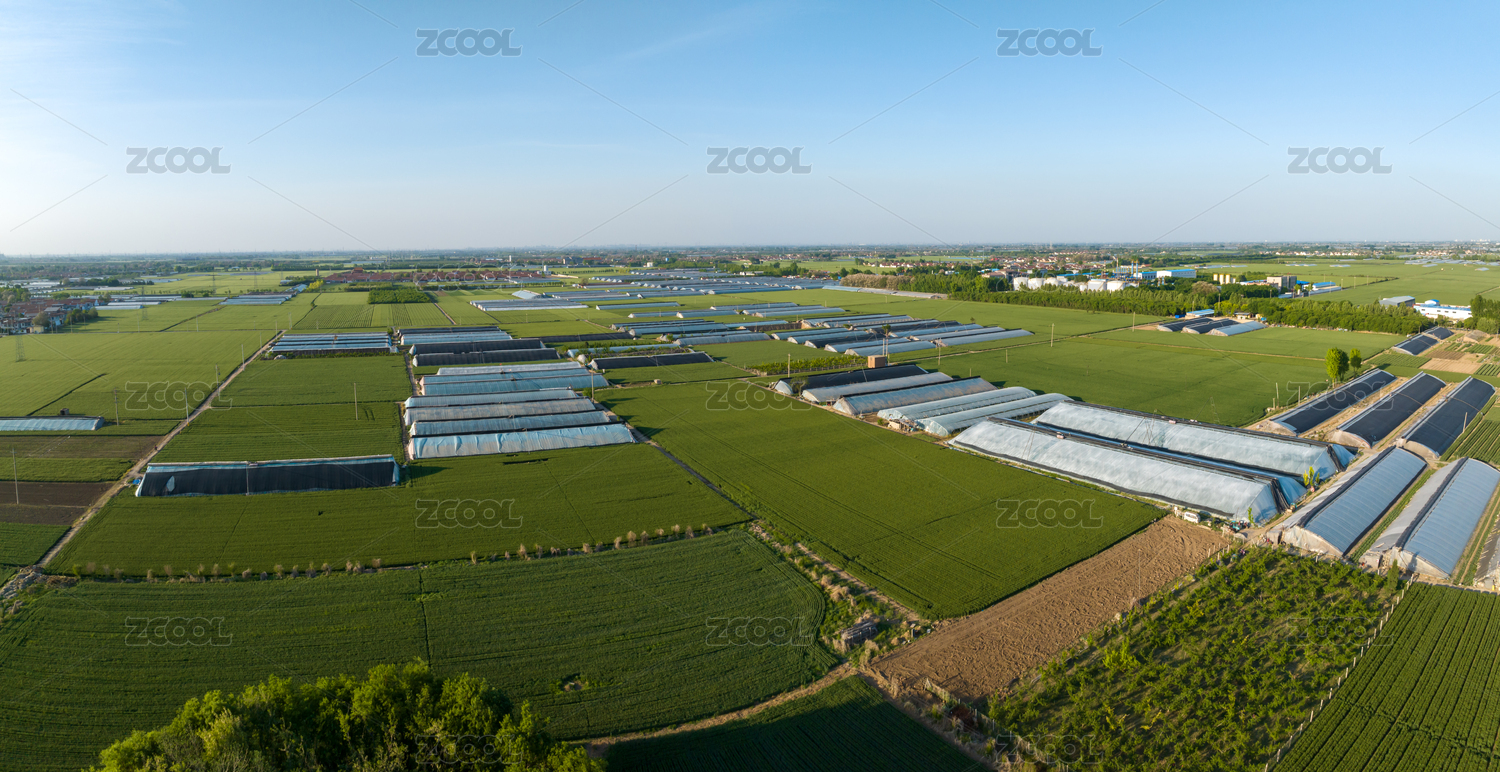 乡村大棚麦田风光航拍
