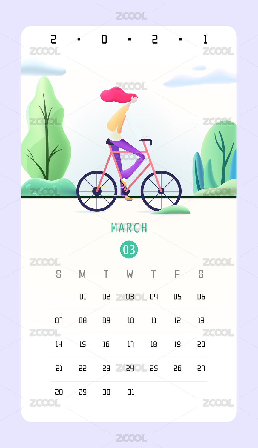 2021年台历三月手绘矢量插画素材