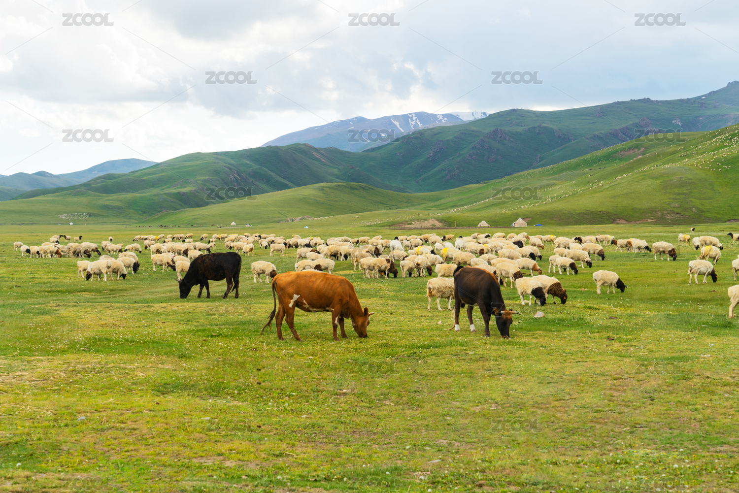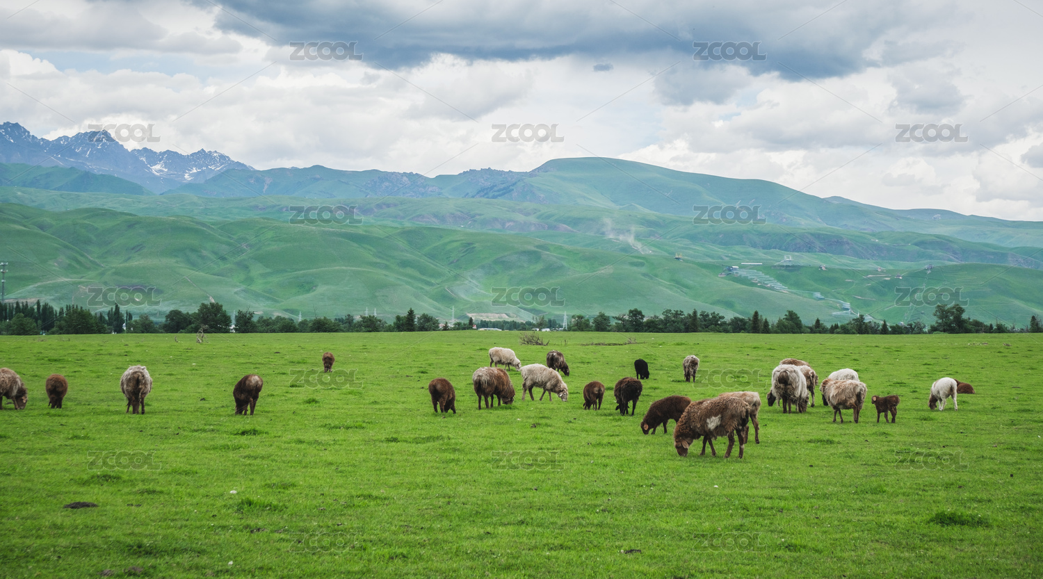 中国新疆伊犁昭苏大草原的辽阔牧场