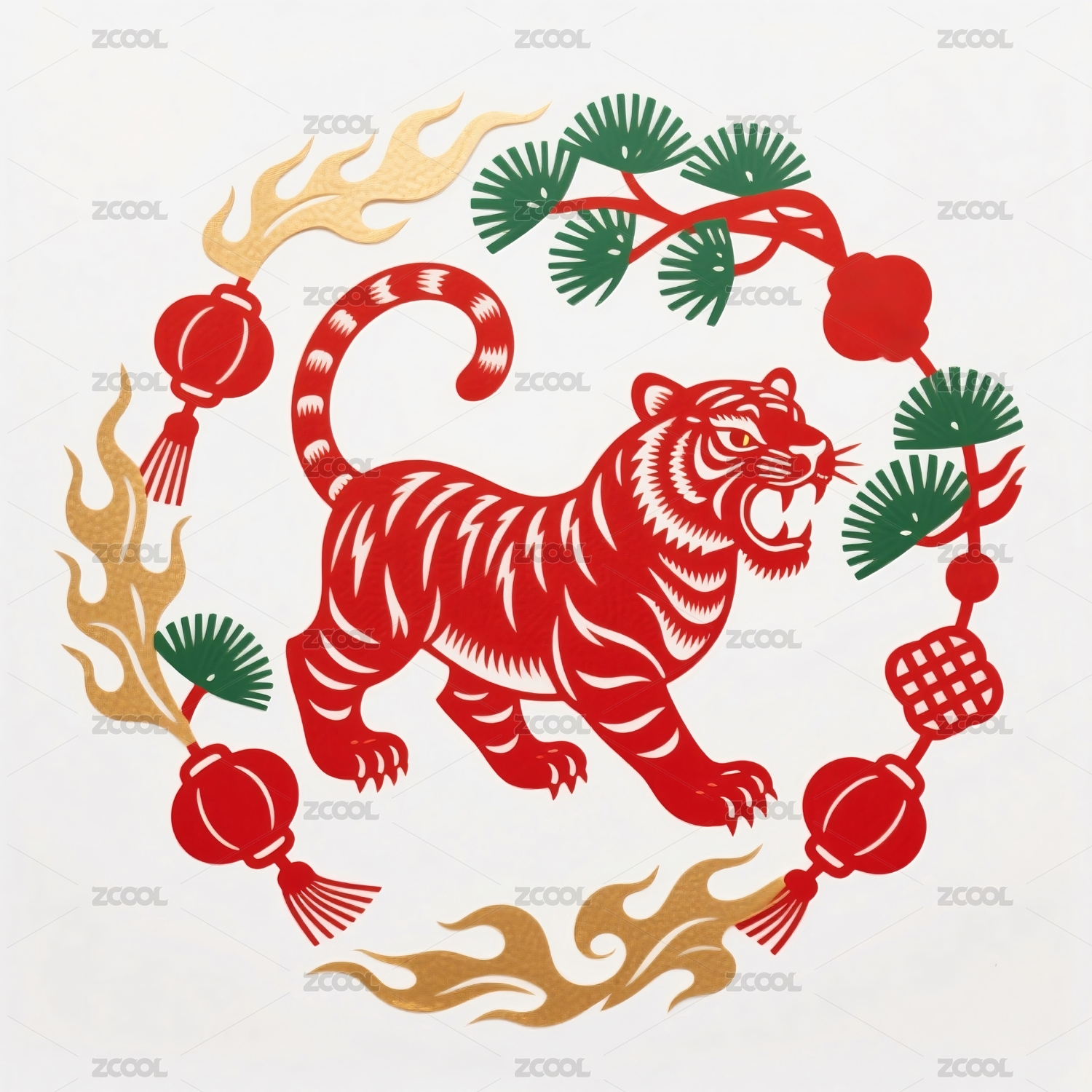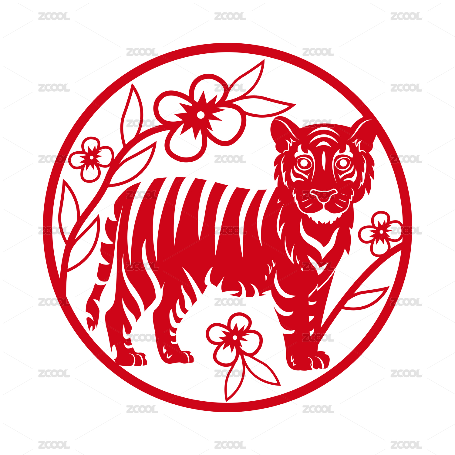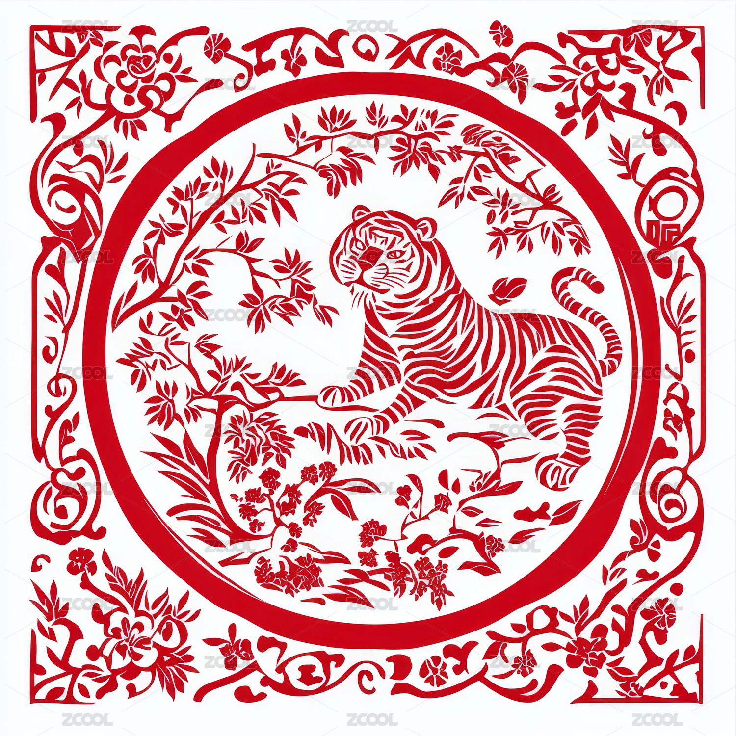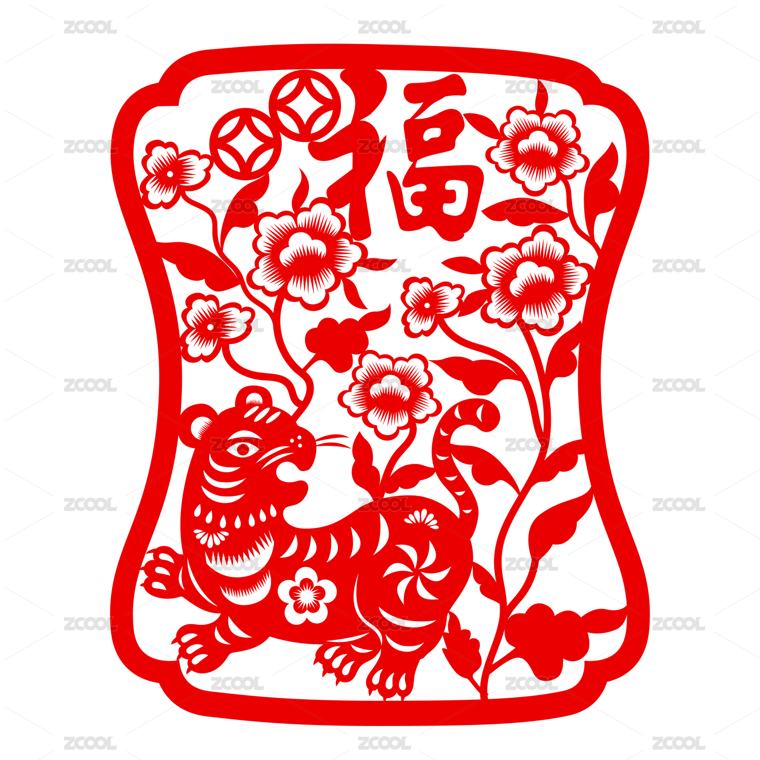 虎年剪纸剪纸窗花中国风春节印刷打印