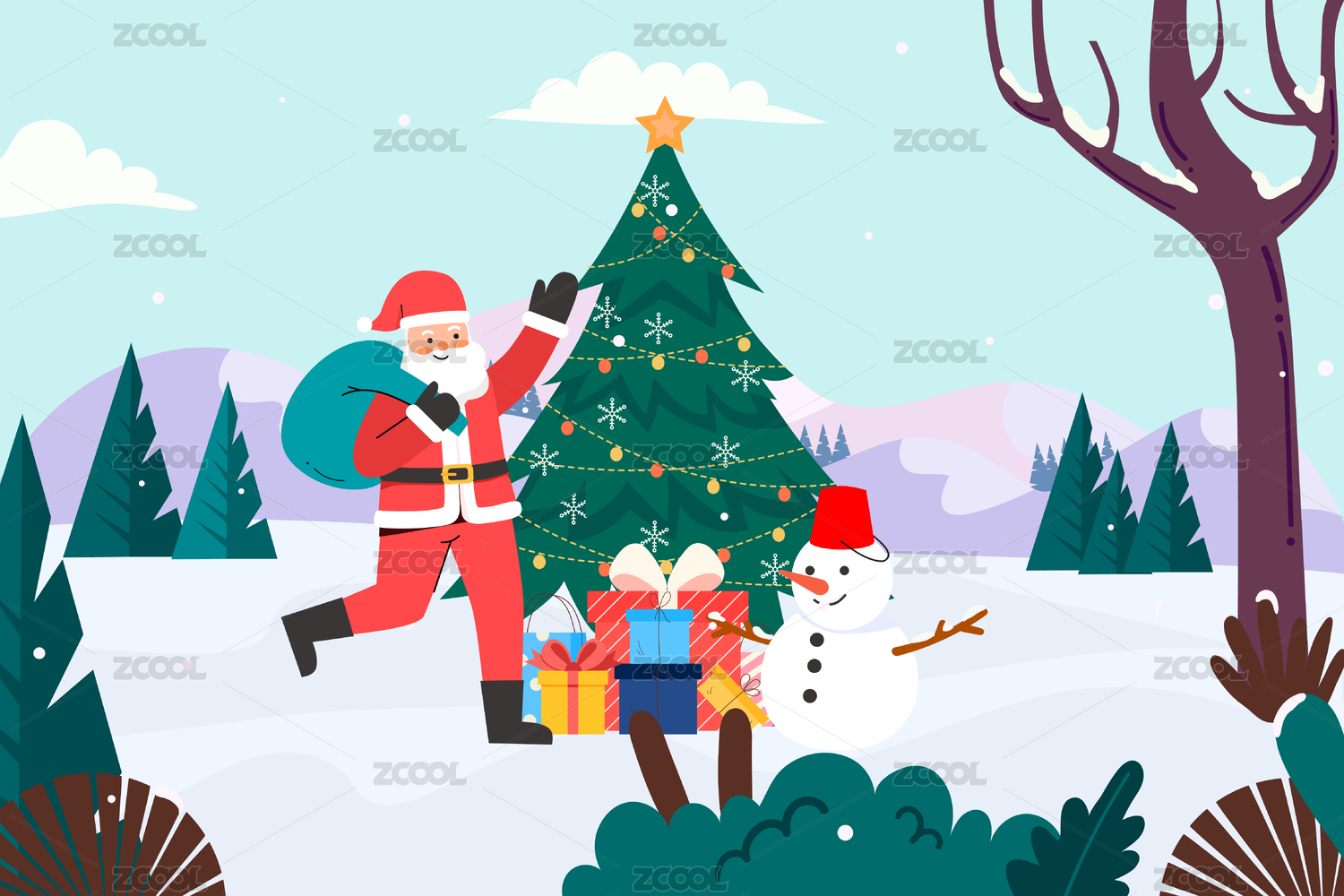 圣诞老人与圣诞树