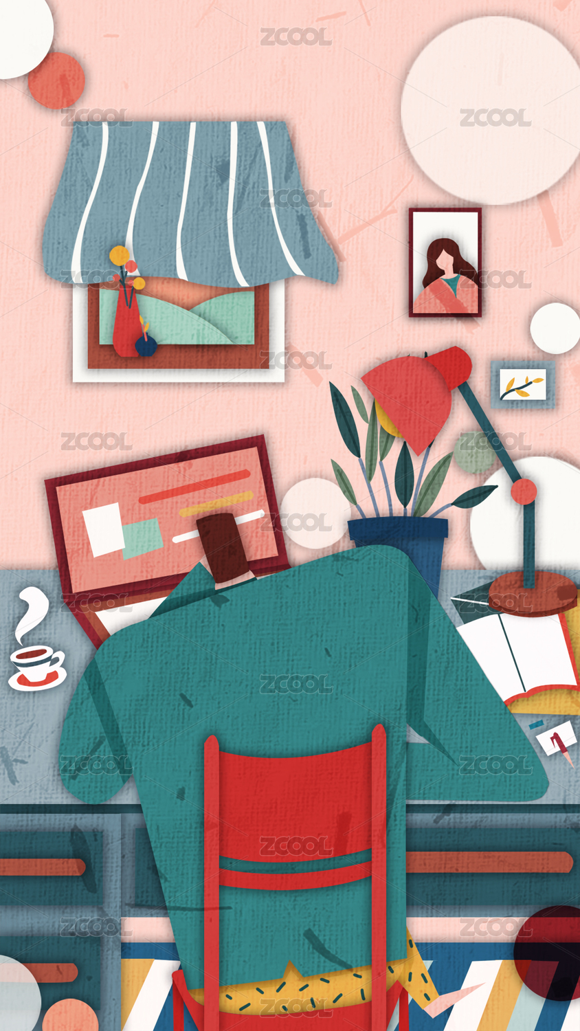 卡通儿插做作业室内矢量插画