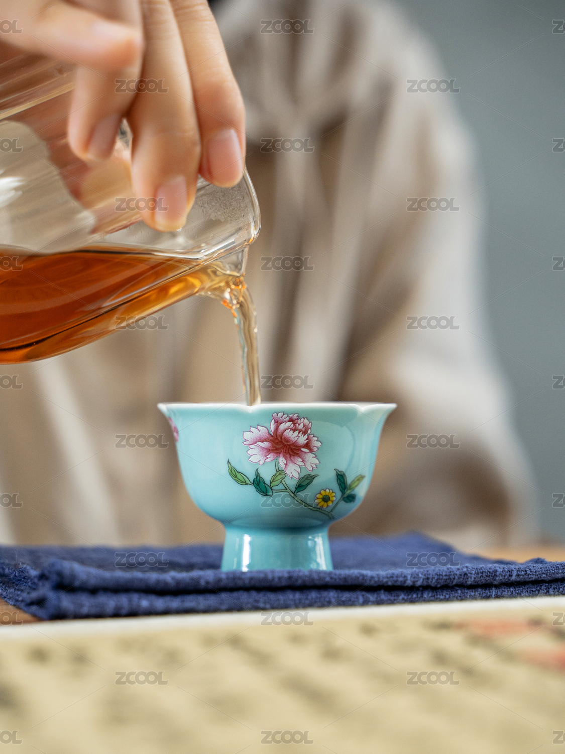 平视角端茶沏茶献茶的动作