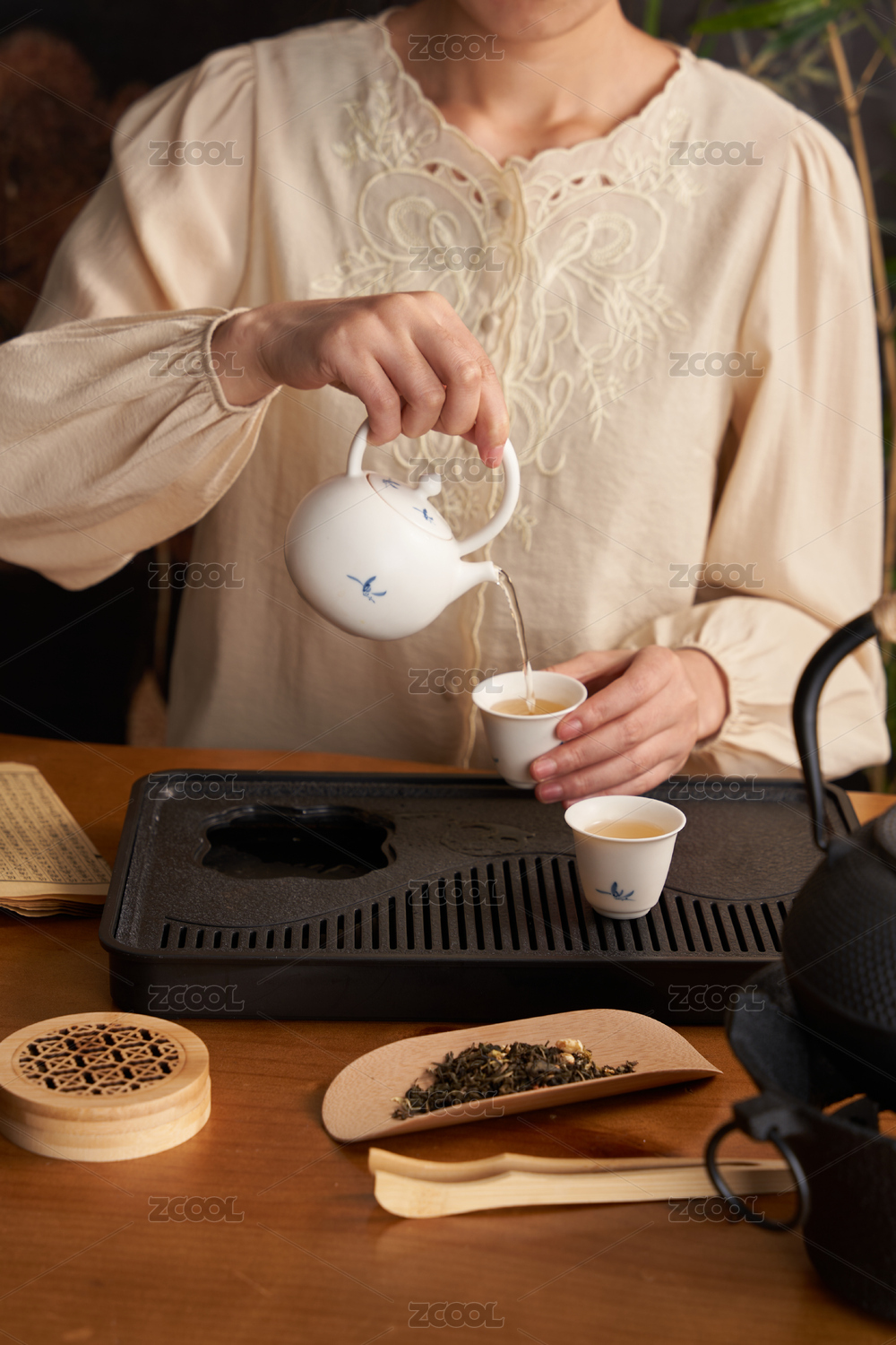 年轻的亚洲女性在倒茶泡茶