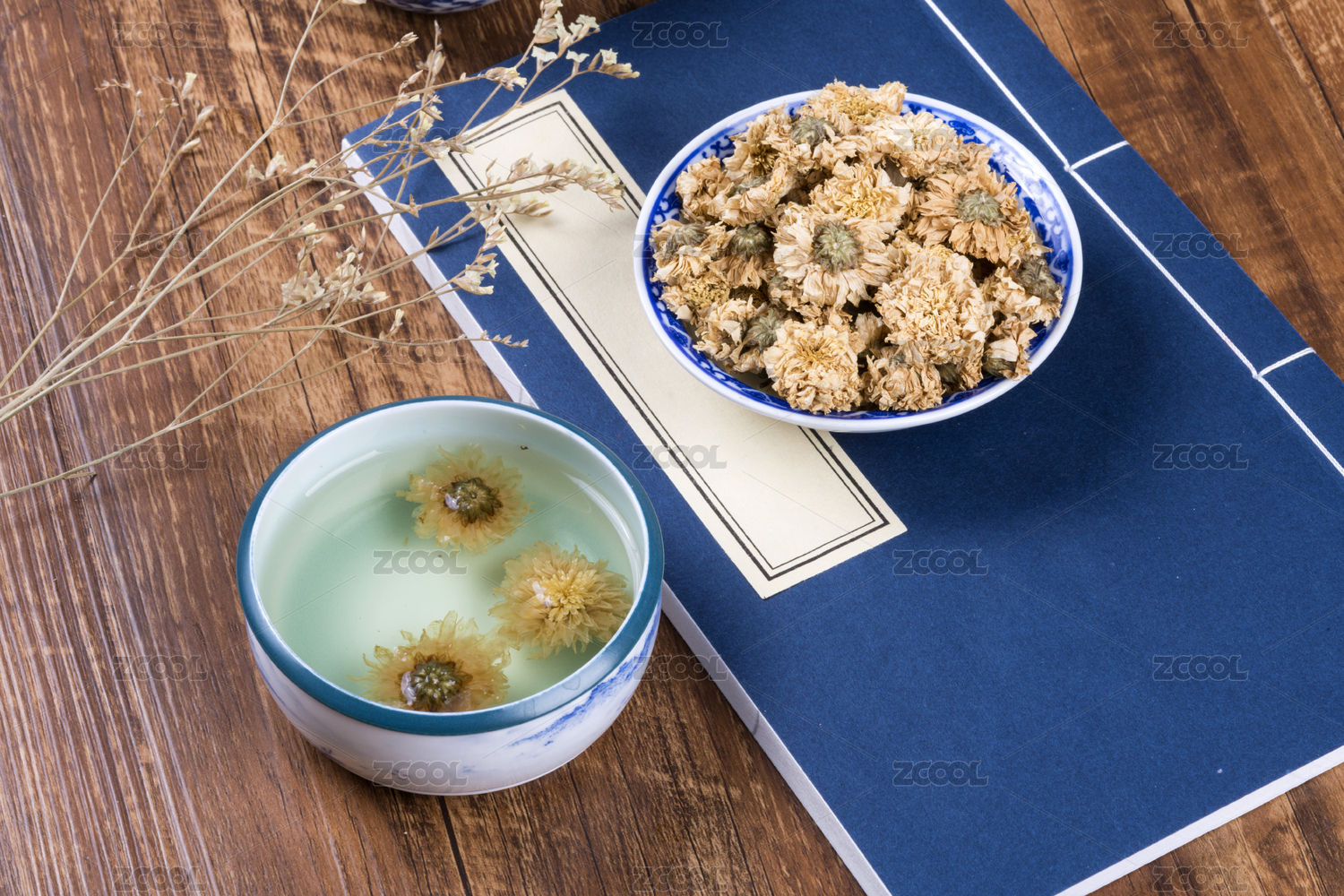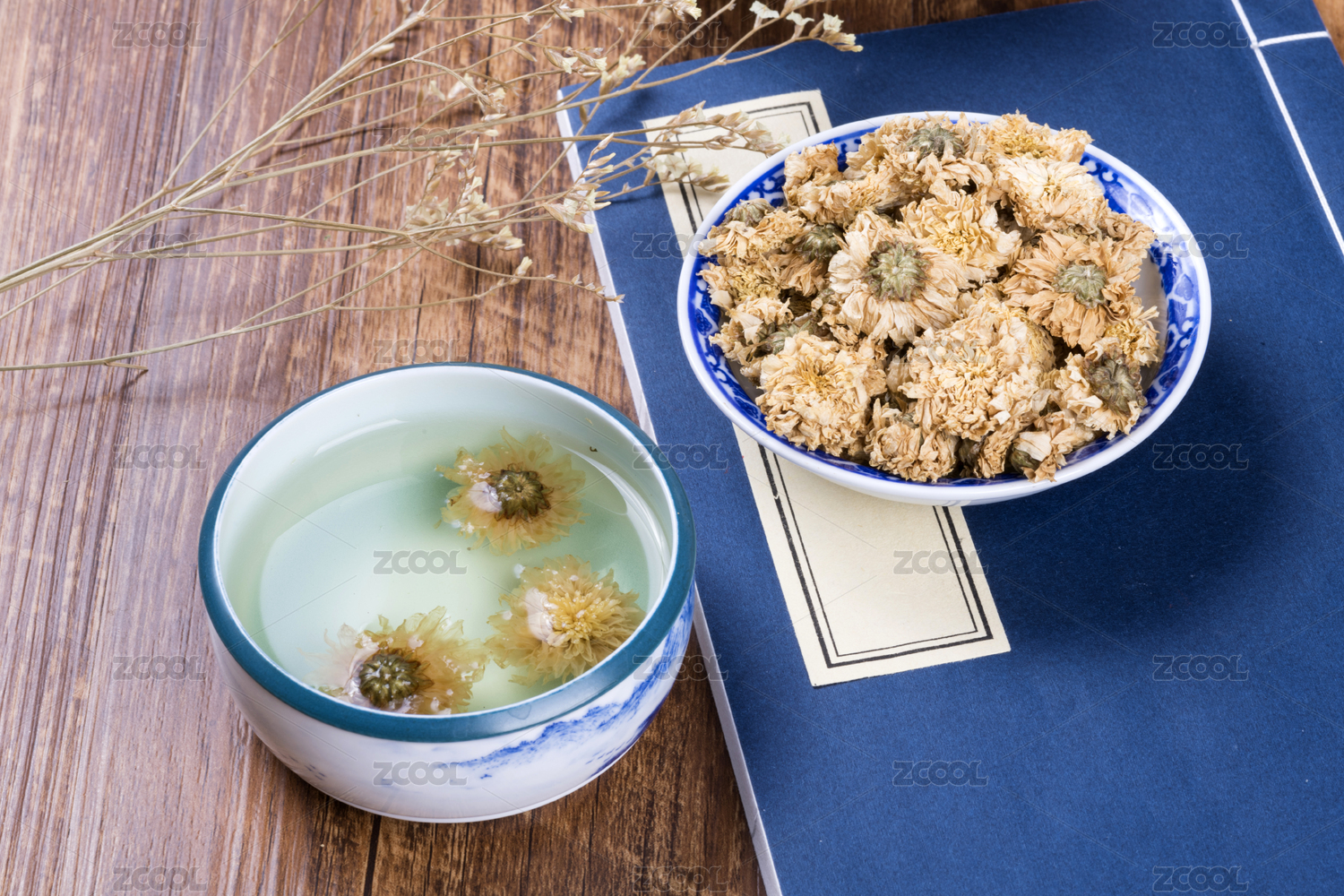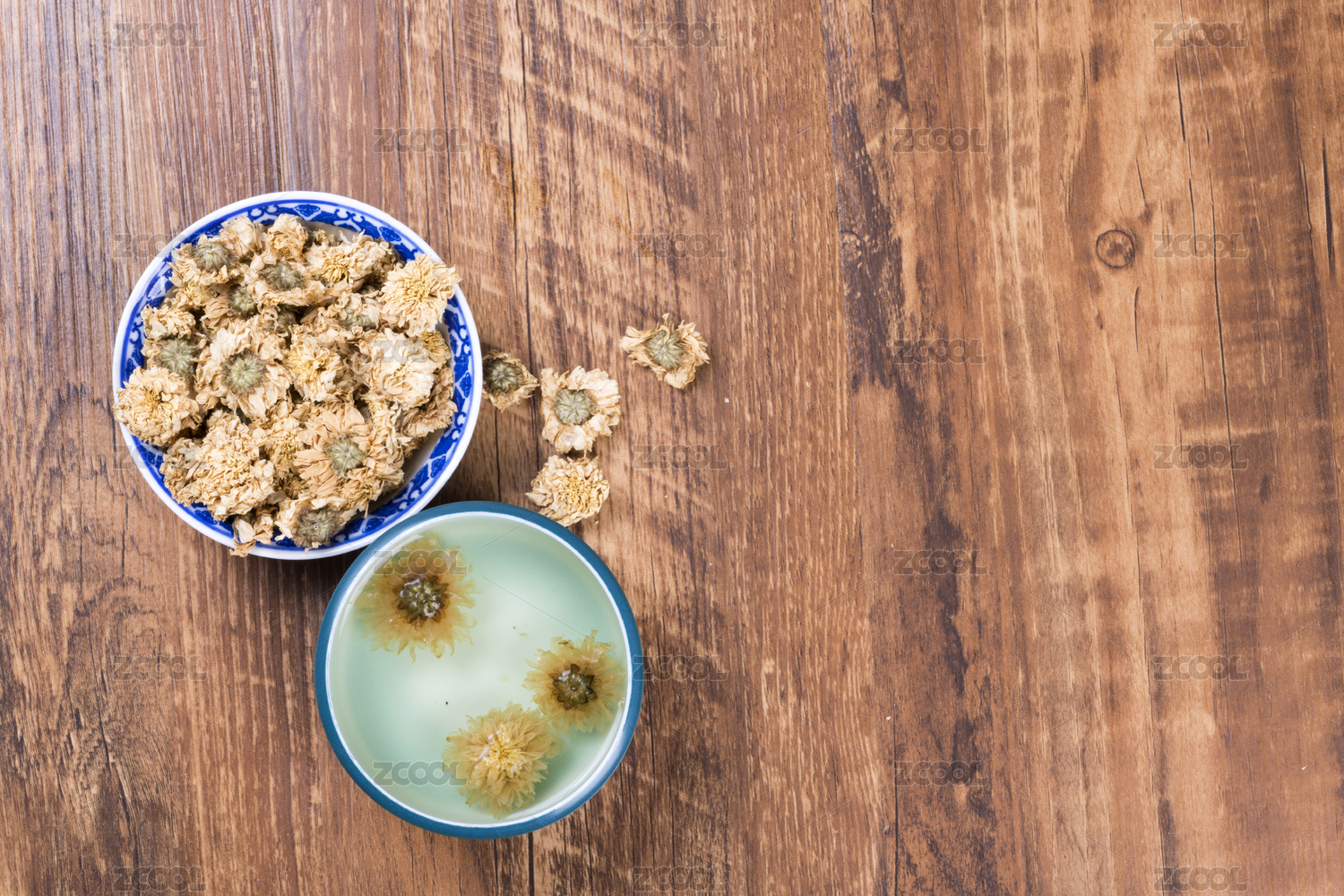 木桌上的菊花茶