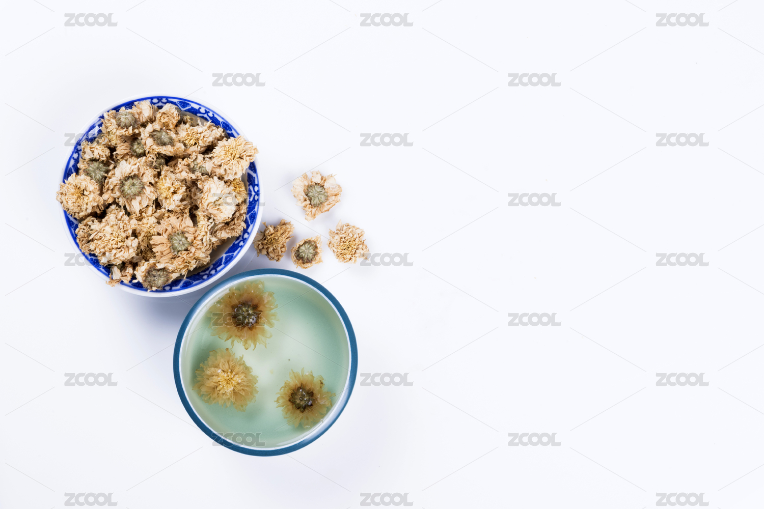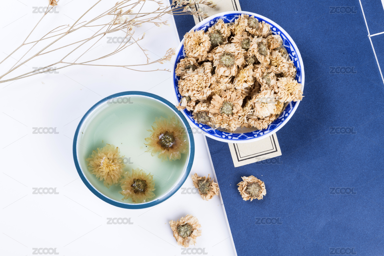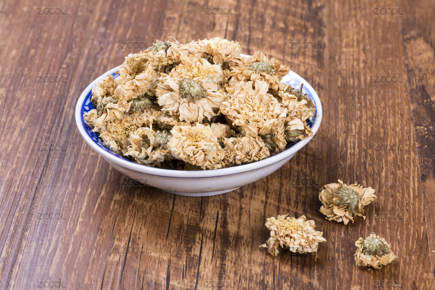灰色背景上的一碟菊花干