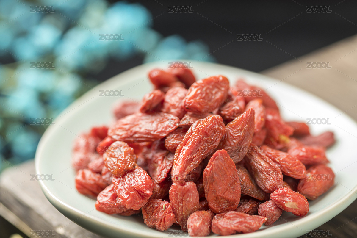 枸杞枸杞茶特写古窗棂木桌面深色调