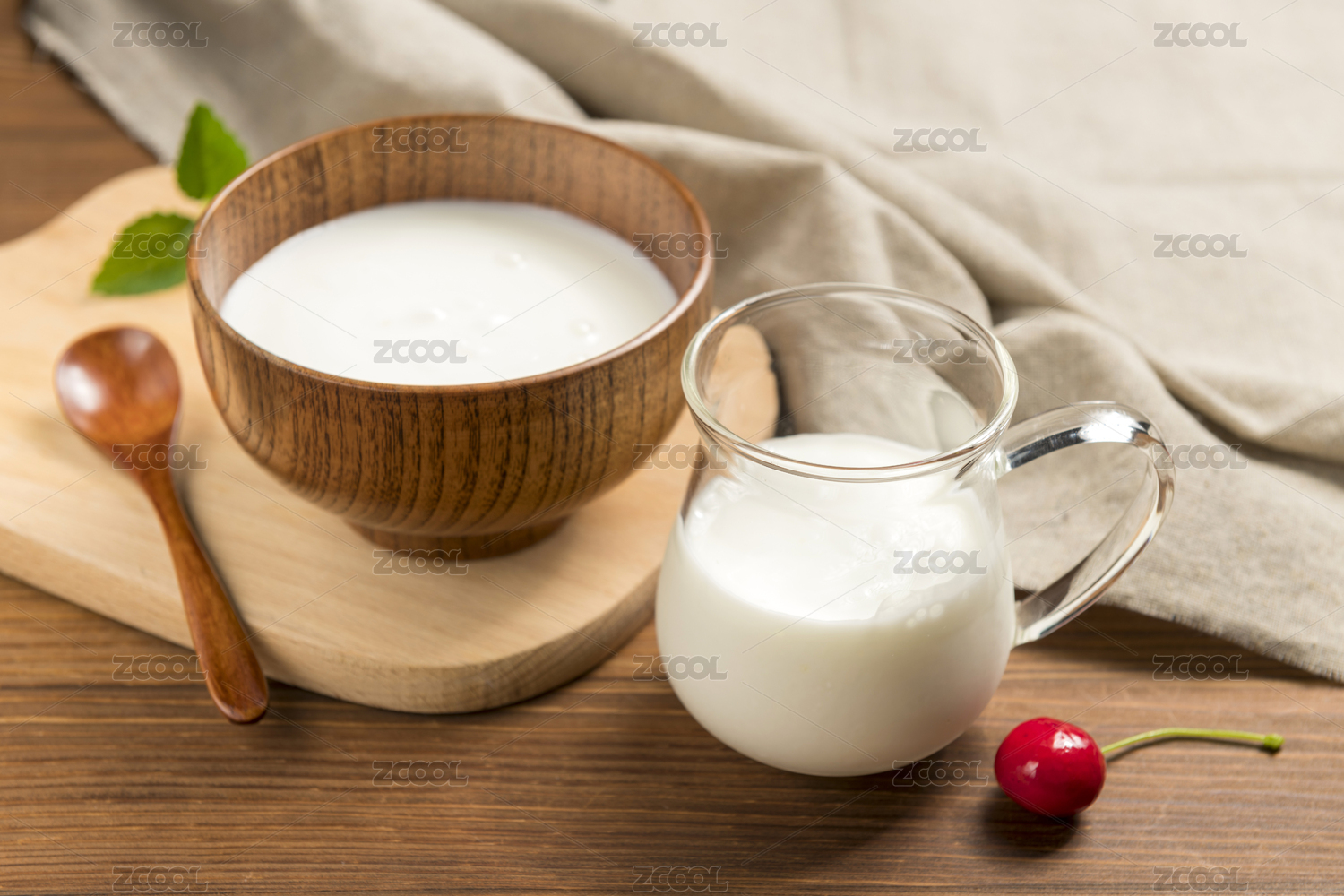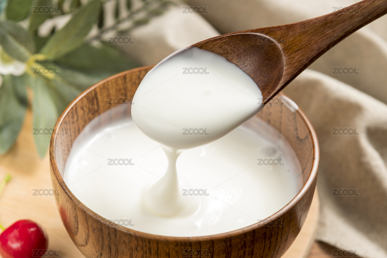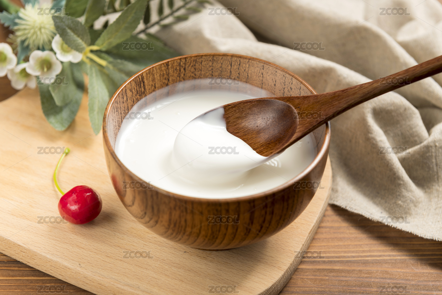 一碗酸奶,一杯酸奶,勺盛酸奶,酸牛奶,酸奶,木碗,一碗,一杯,牛奶饮品,奶制品