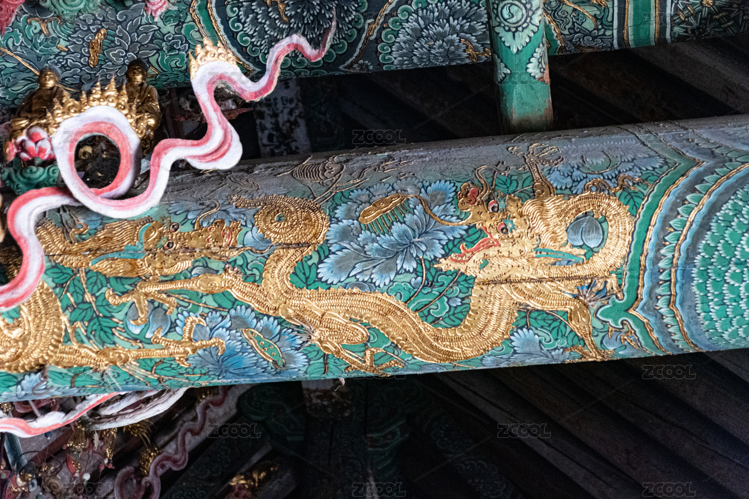 云南省昆明市金殿室内龙纹斗拱装饰建筑