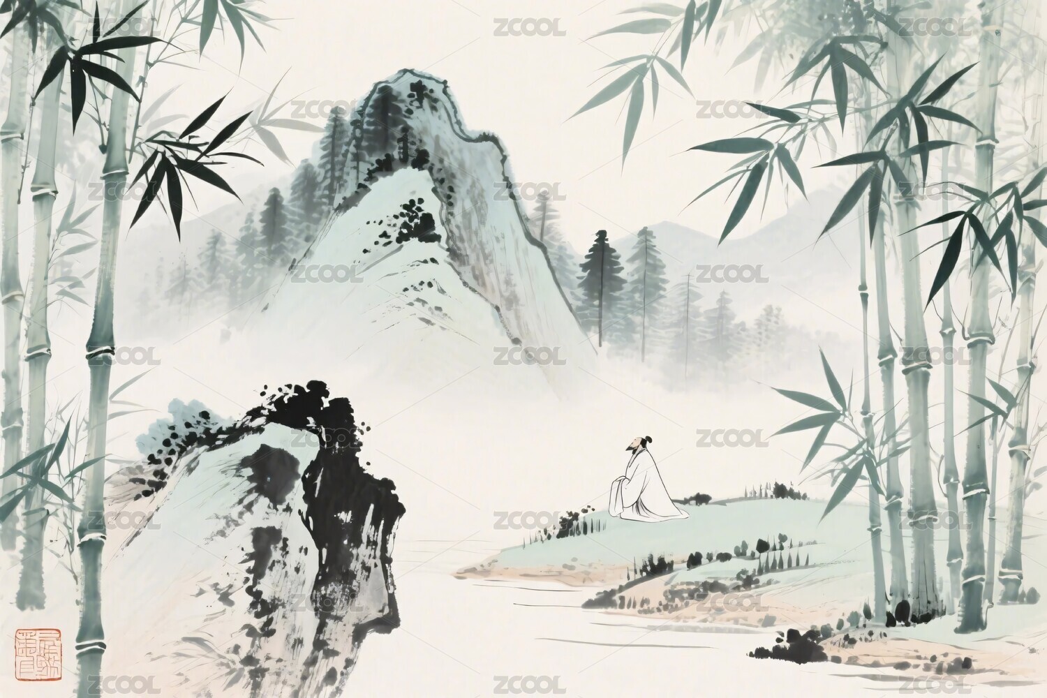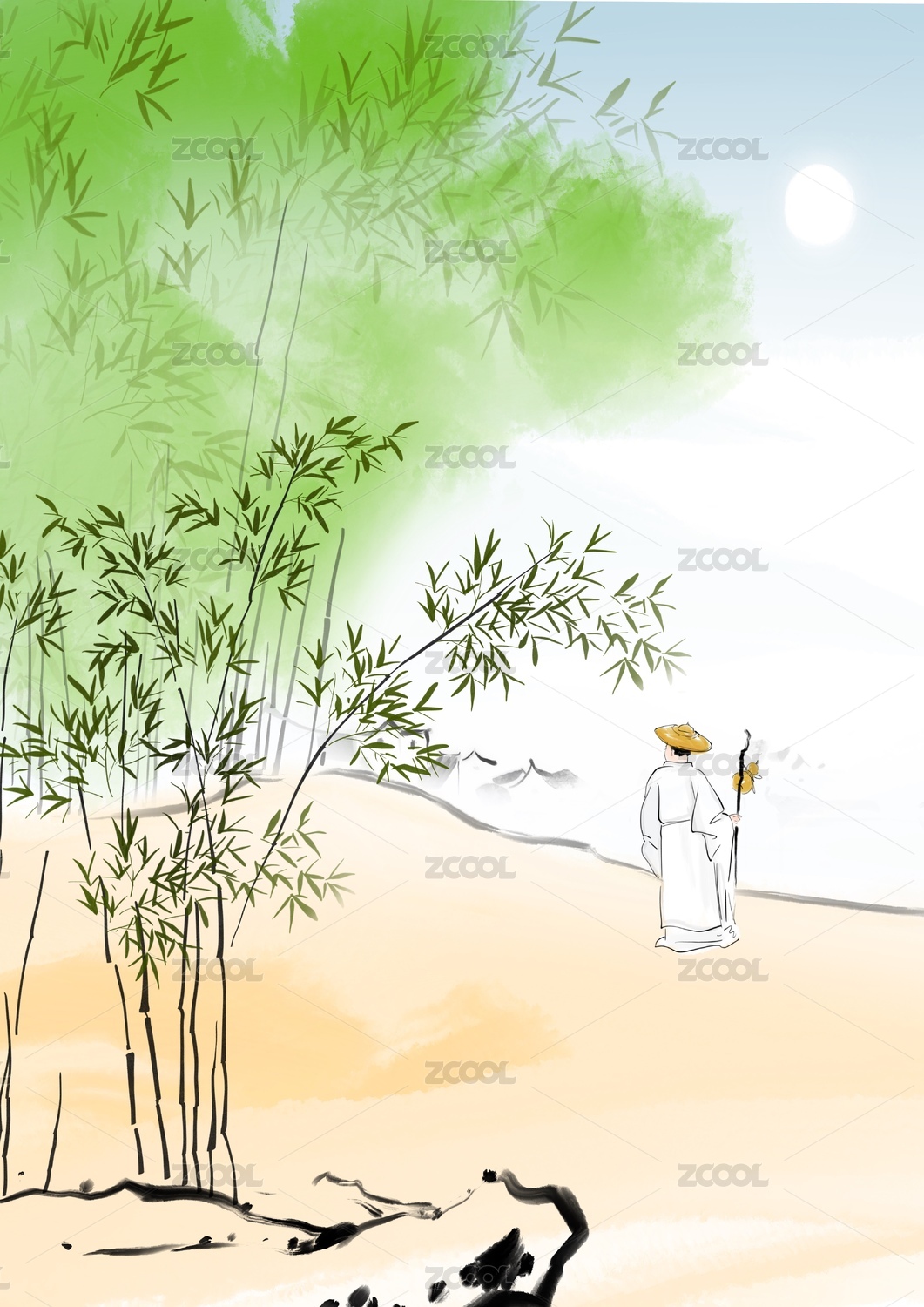 古风竹林人物插画