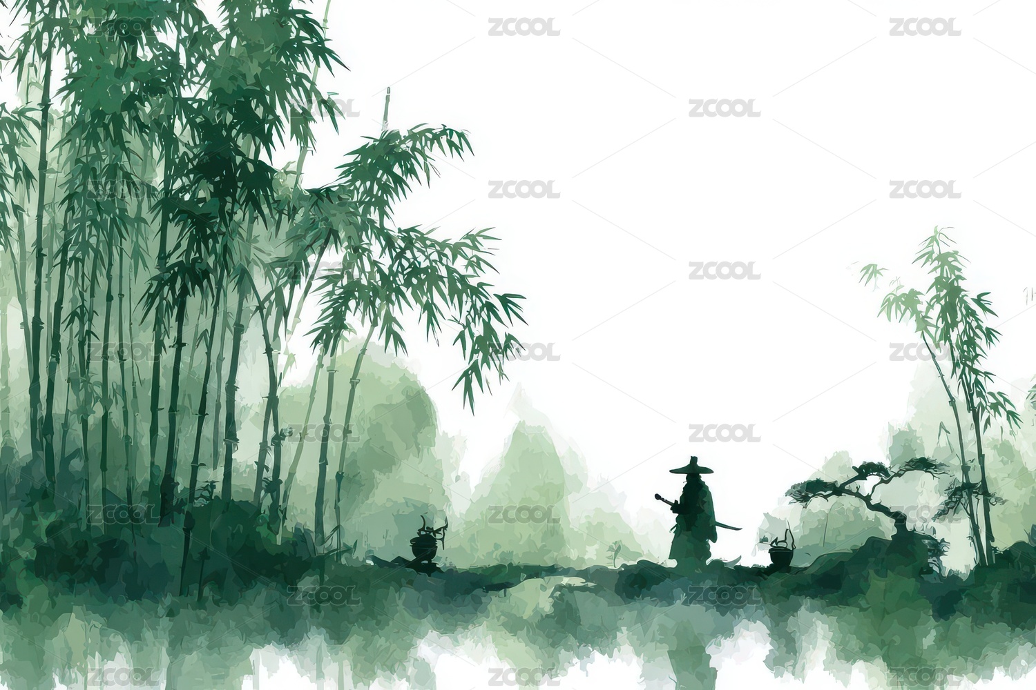 竹林深处侠客独行的水墨意境