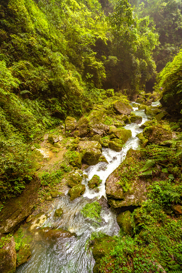 重庆武隆天坑地缝峡谷清澈山溪流水