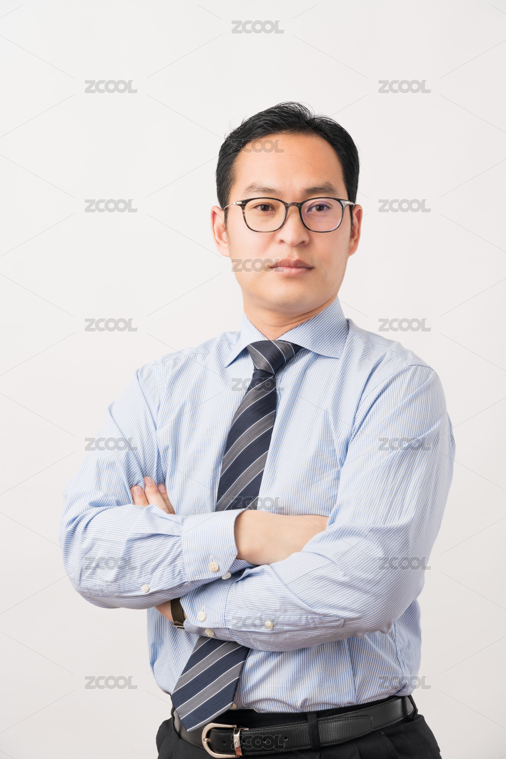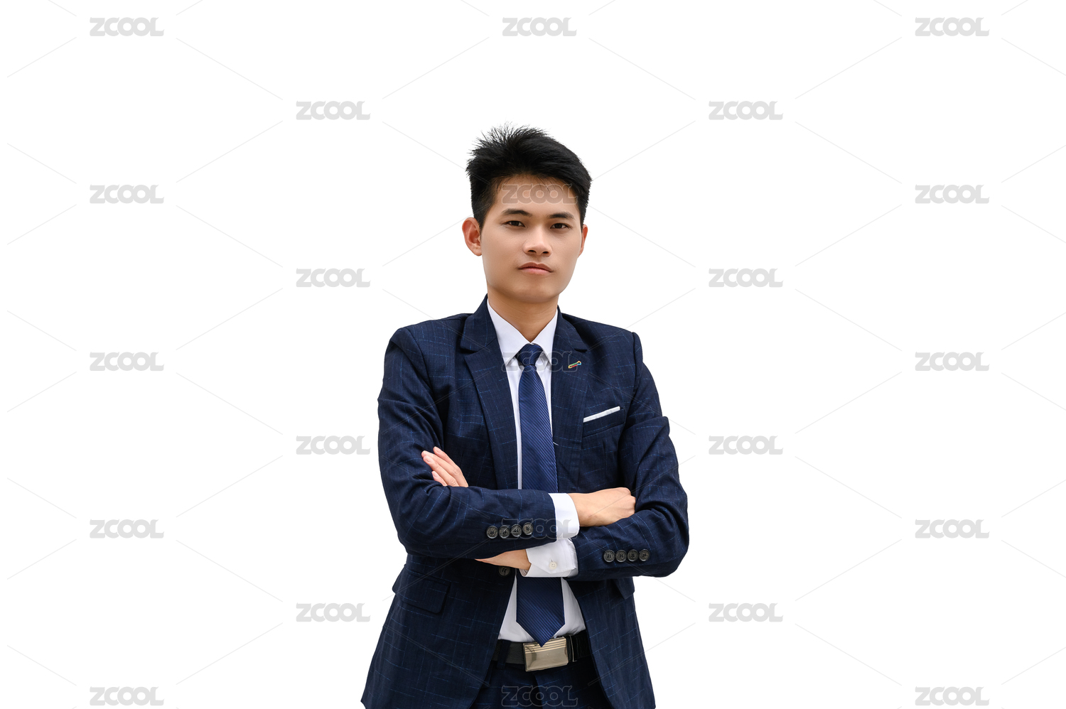 站在白色背景前穿正装的亚洲男士