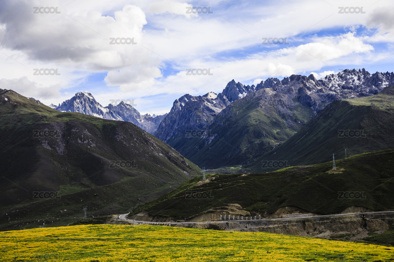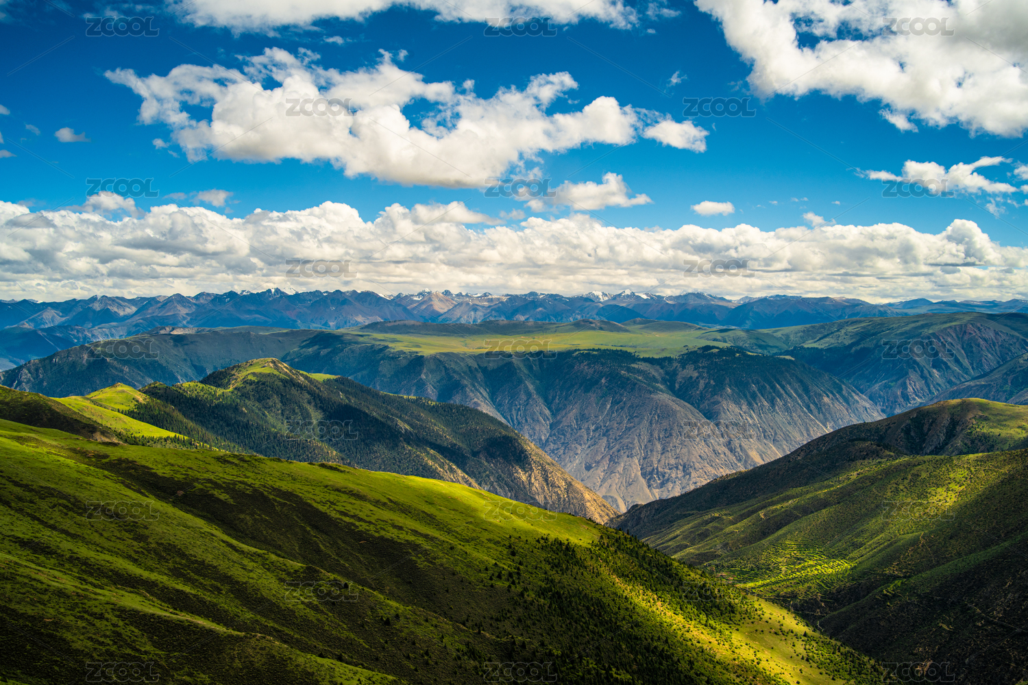 山,蓝天,白云,高山,昌都,村庄,峡谷,山谷,雪山,积云