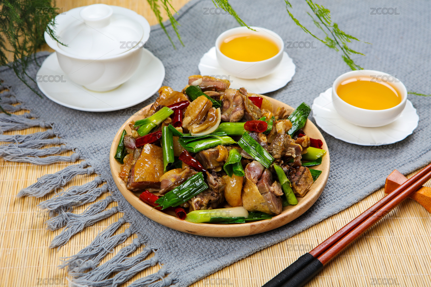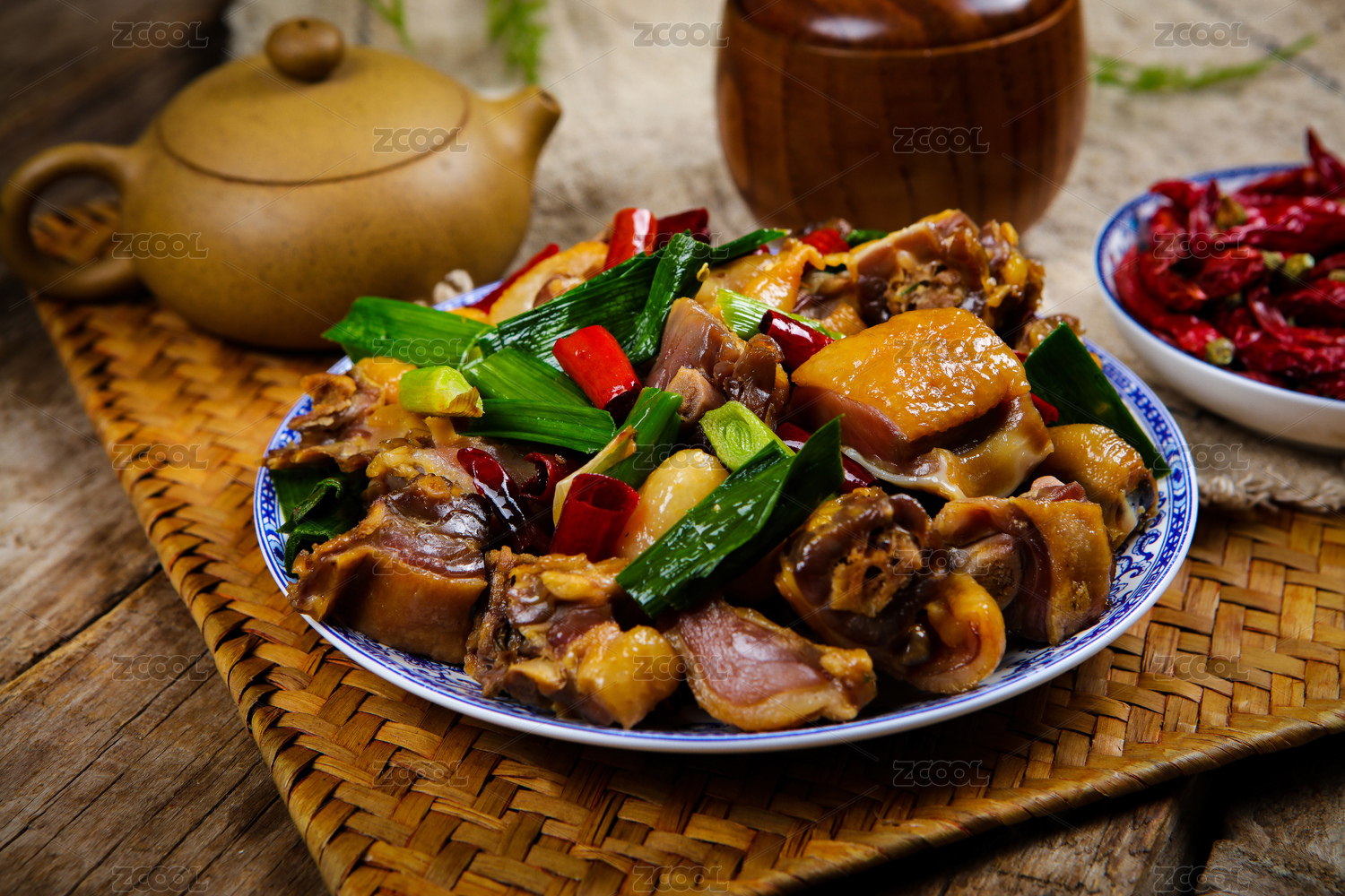 美味特色菜蒜苗辣椒爆炒腊鸭肉