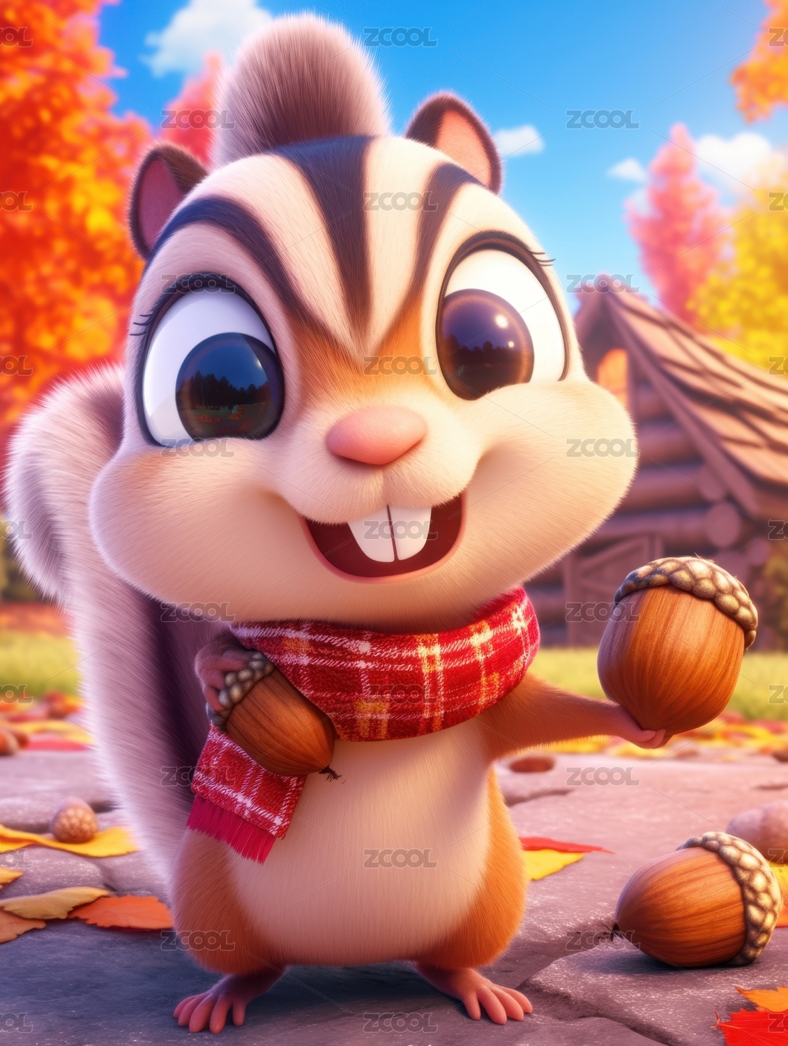 秋天下的可爱小动物宠物萌宠卡通漫画插画