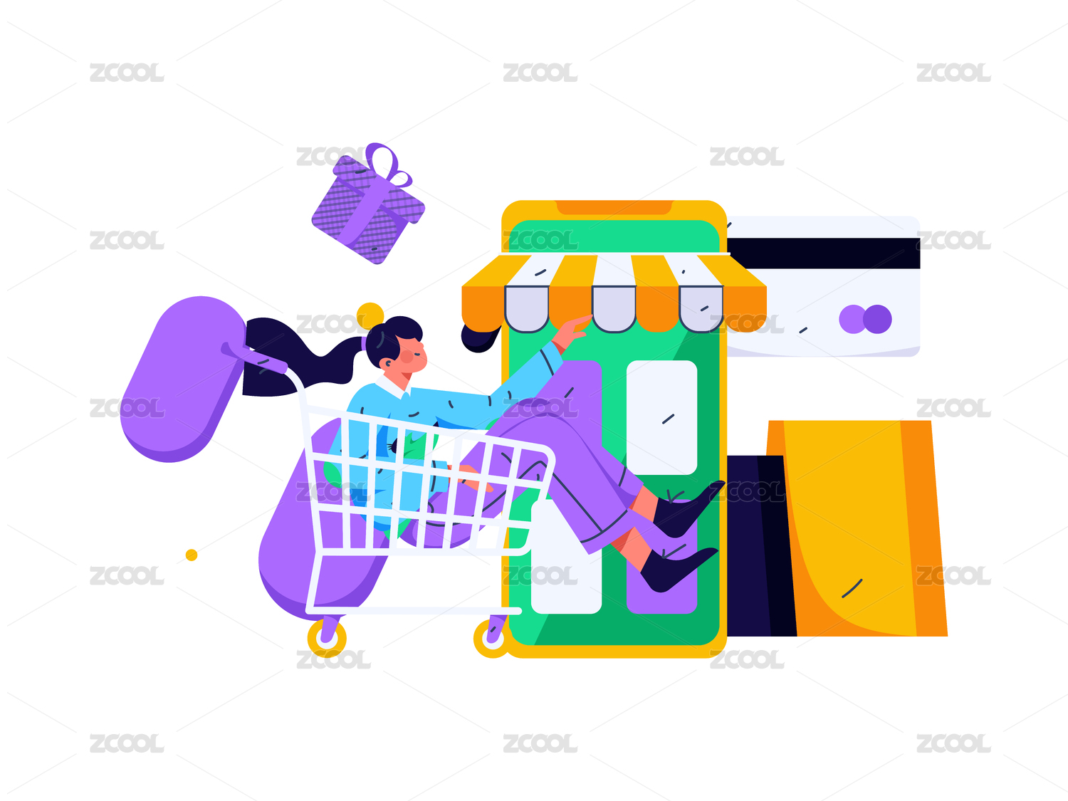 3D,矢量,插图,购物,商店,手机,消费,绿色,植物,广播