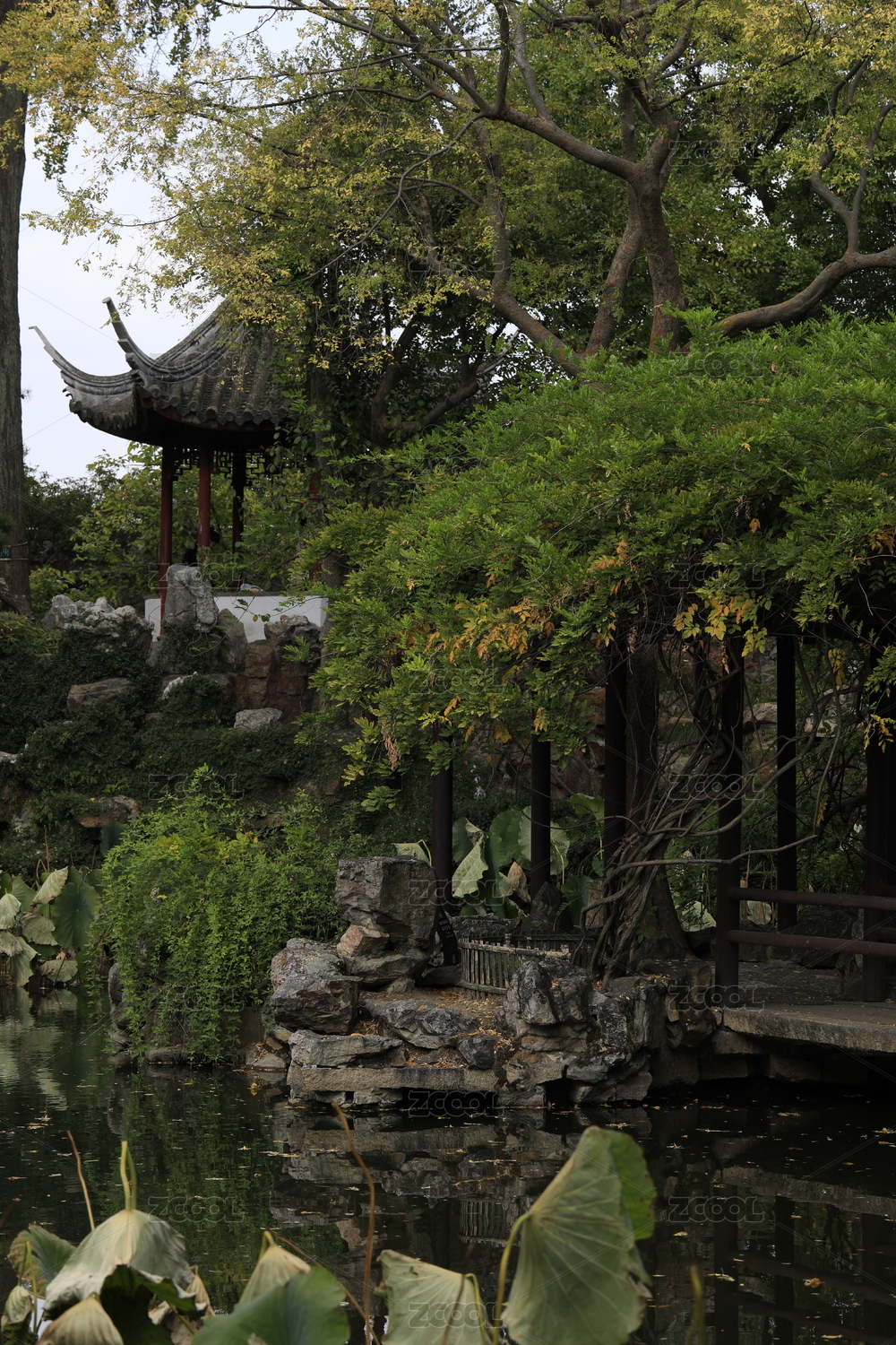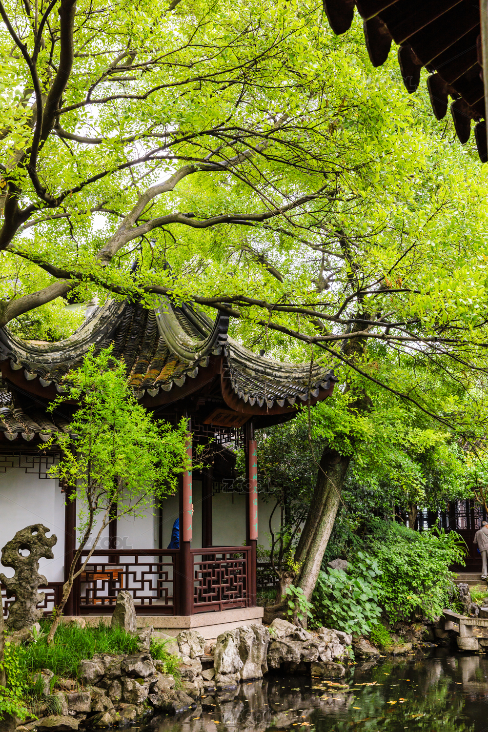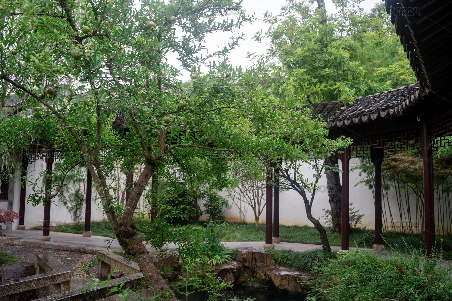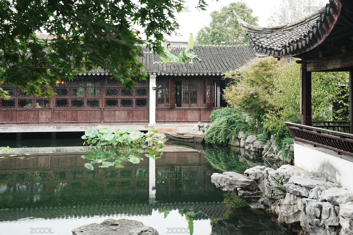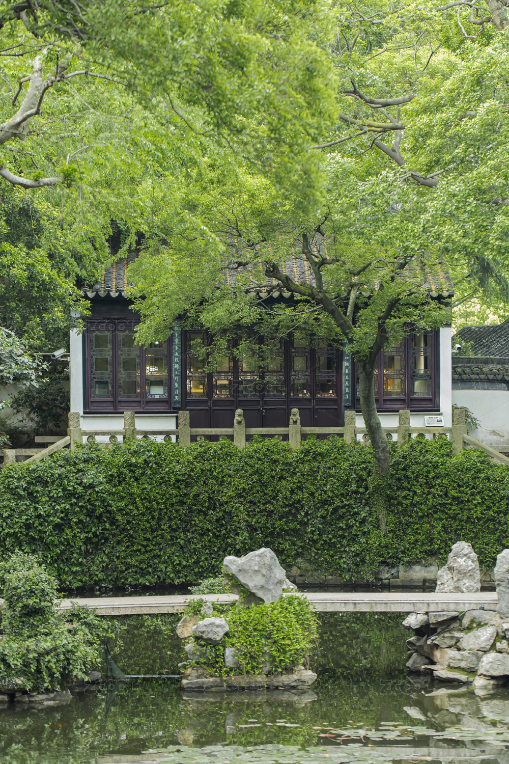 夏天中国苏州园林的自然风光