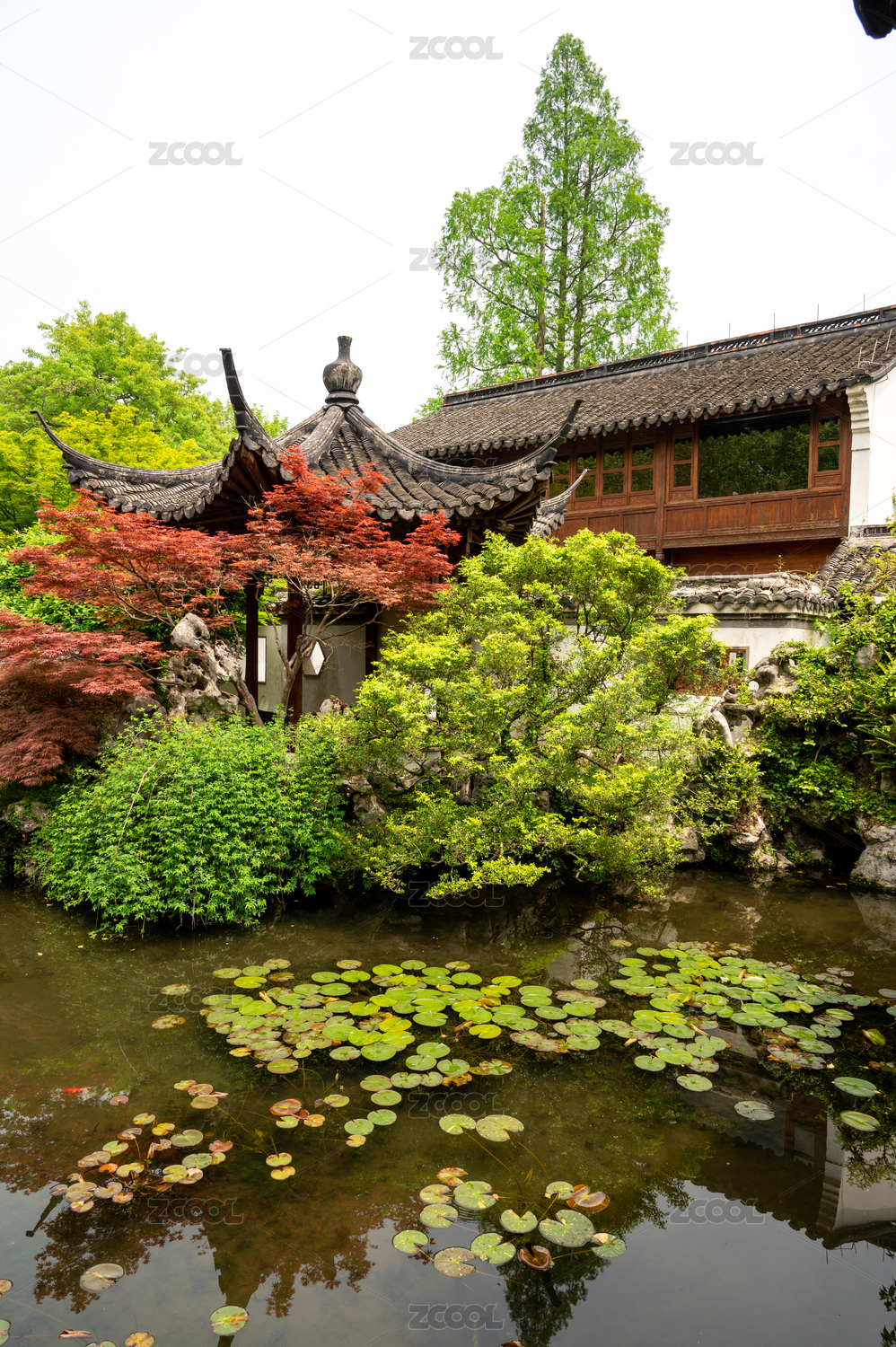 苏州同里古镇退思园池塘景观