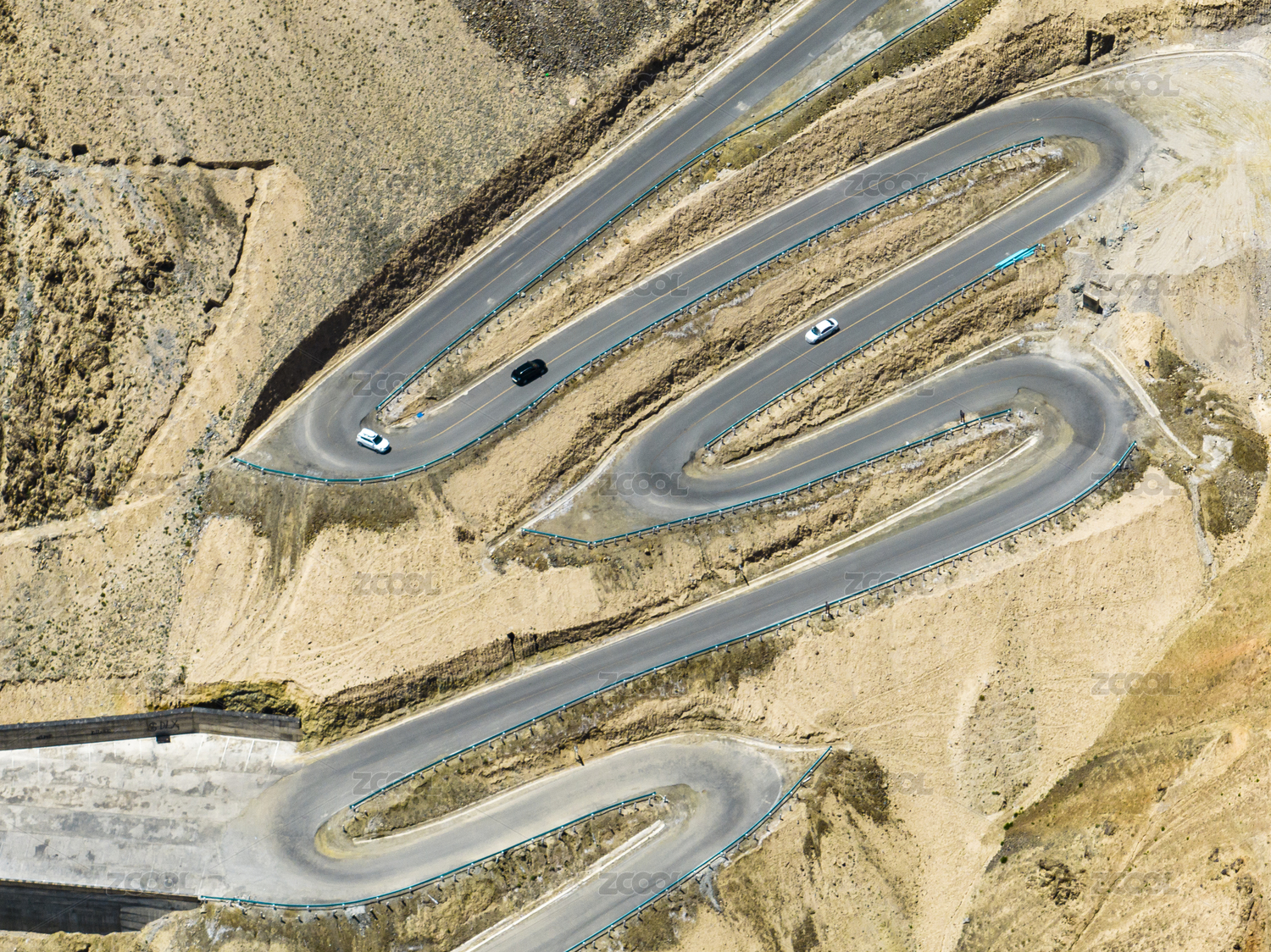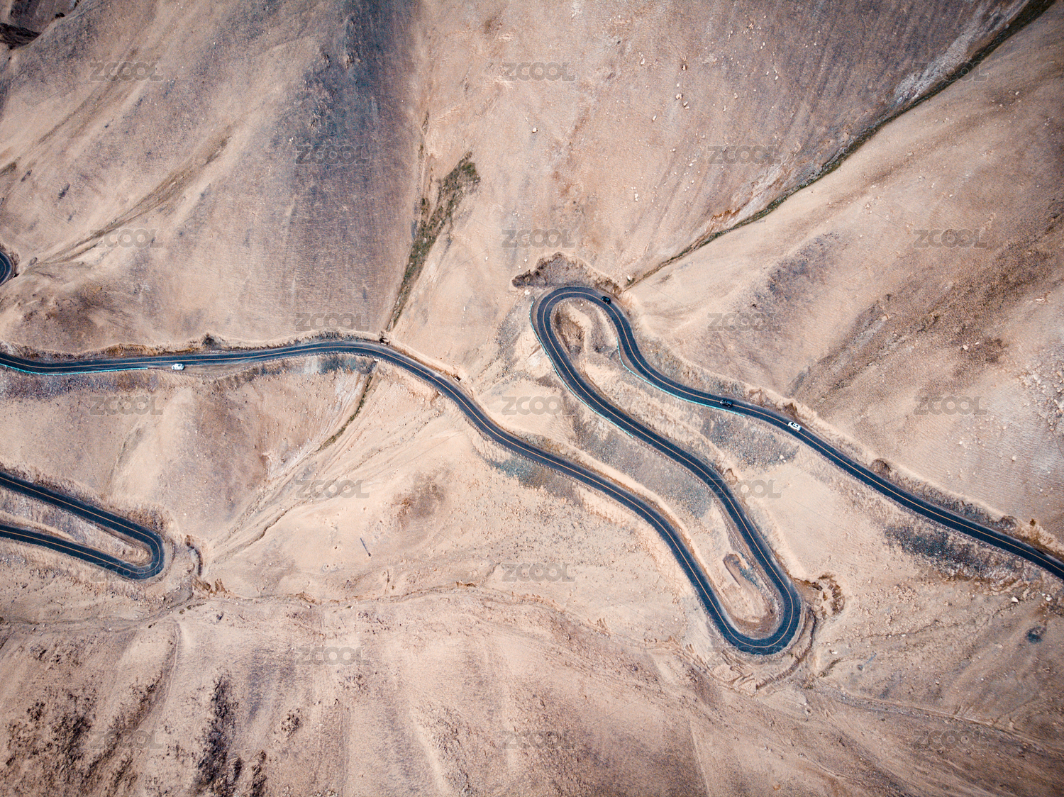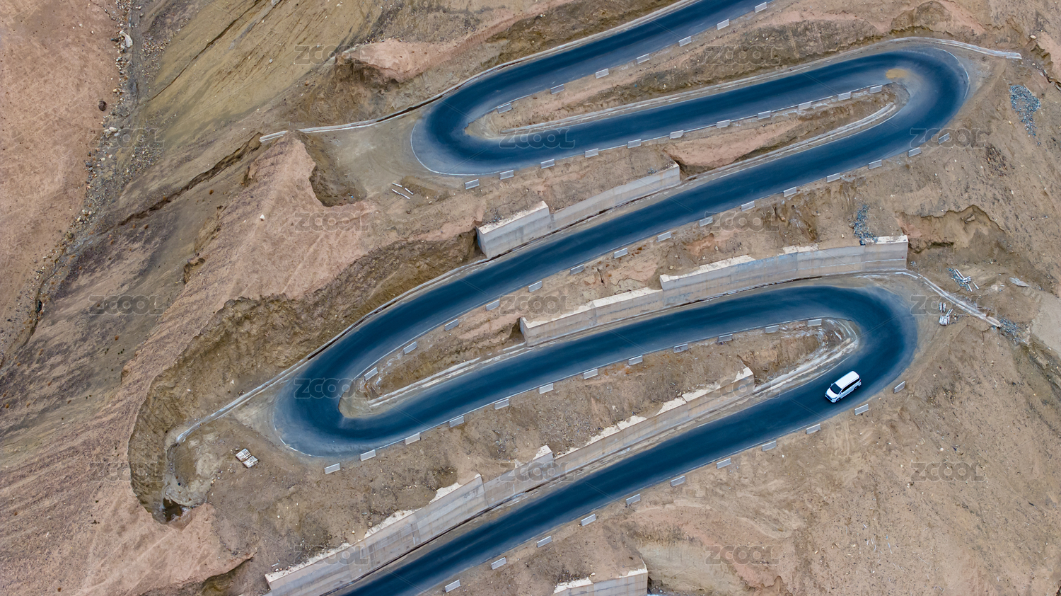汽车行驶在蜿蜒的山路上中国新疆盘龙古道