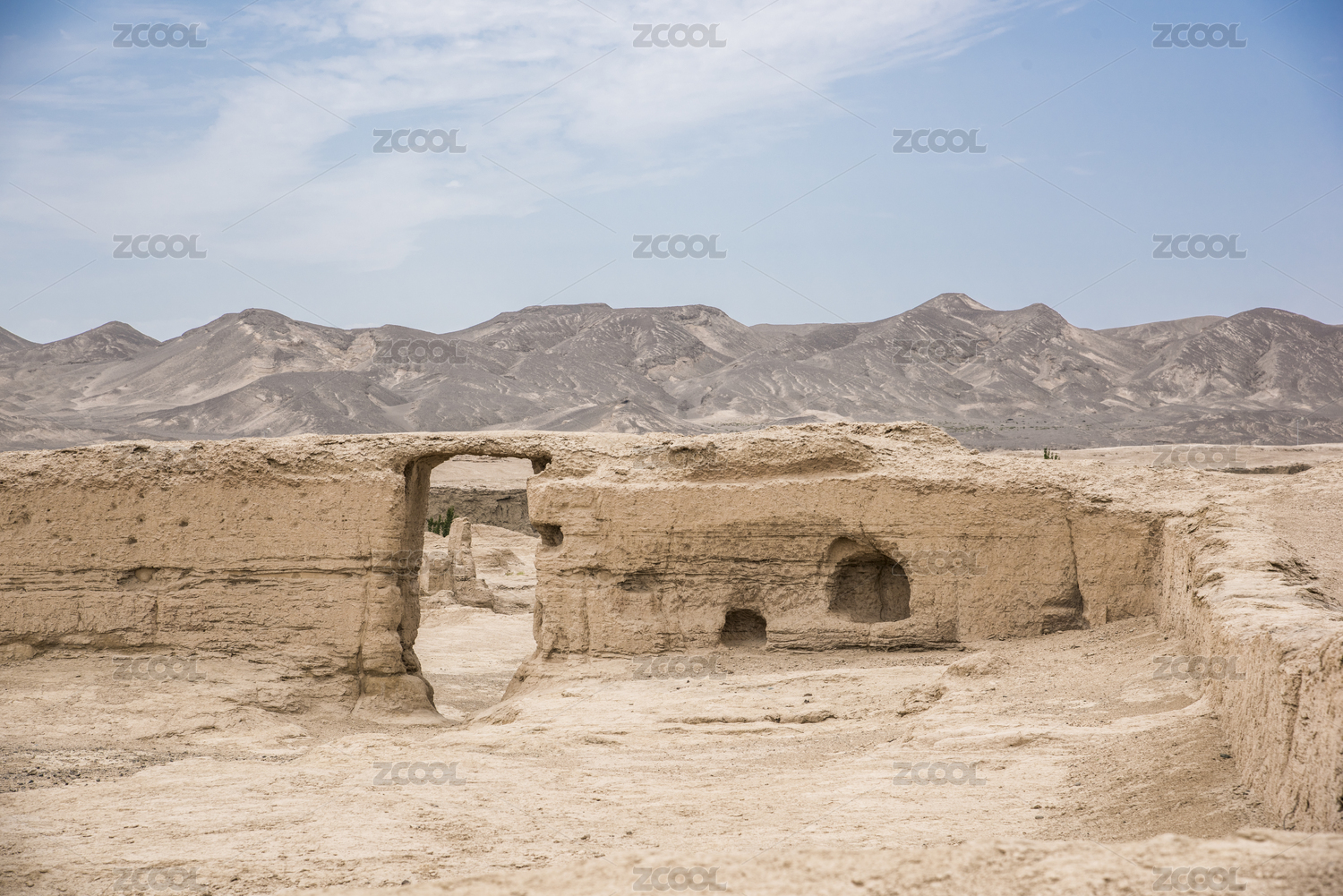 宁夏镇北堡西部影视城蓝天白云黄土风光