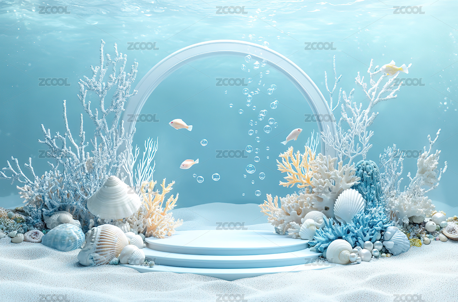 海洋主题清新电商展台3d水晶质感背景