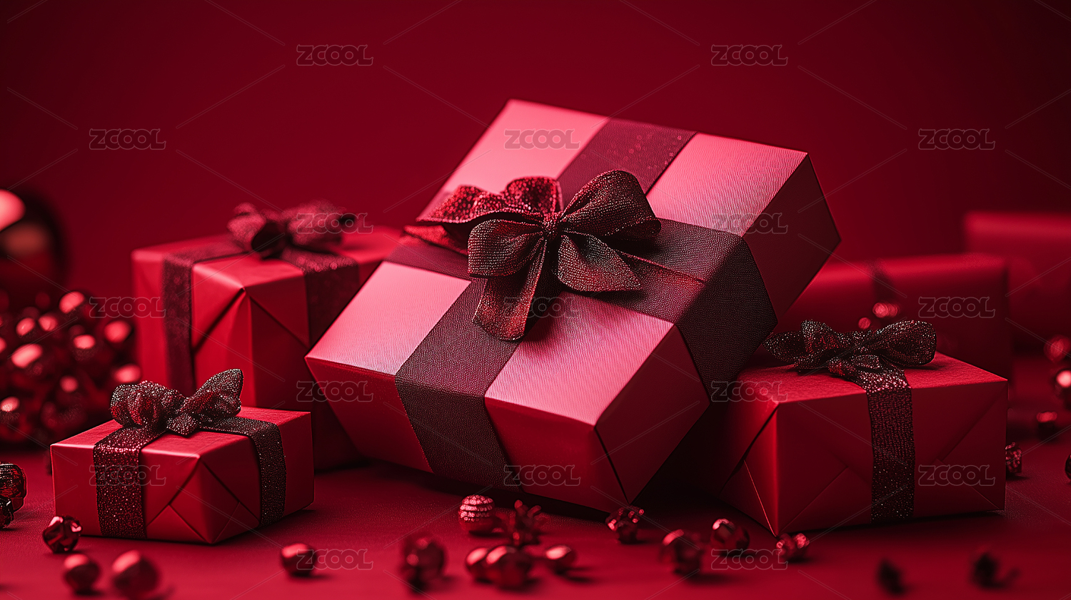 庆祝,圣诞节,蝴蝶结,礼物,红色,影棚拍摄,特写,节日,生日,圣诞礼物