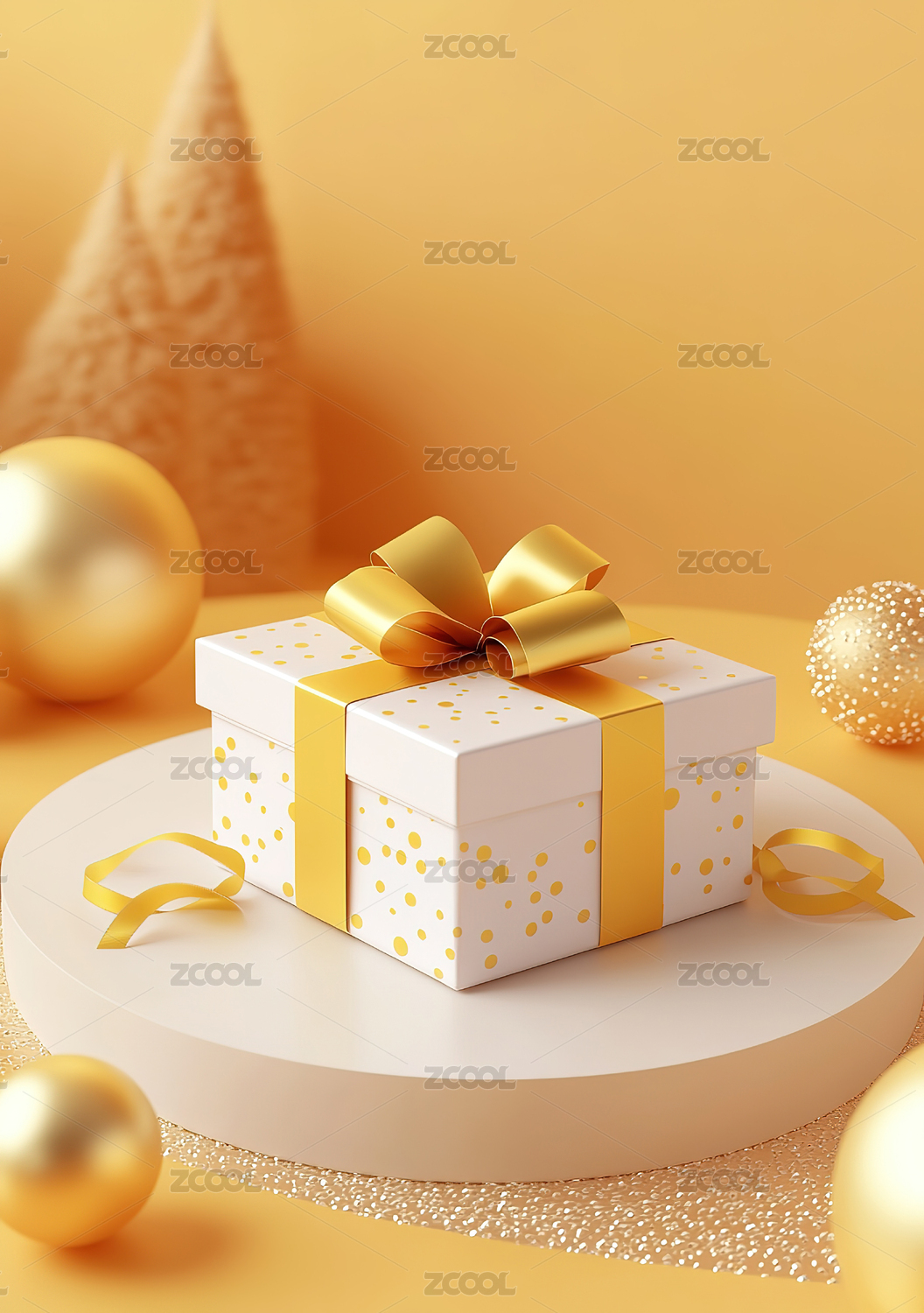 黄色背景下的圣诞装饰品和礼品盒特写镜头
