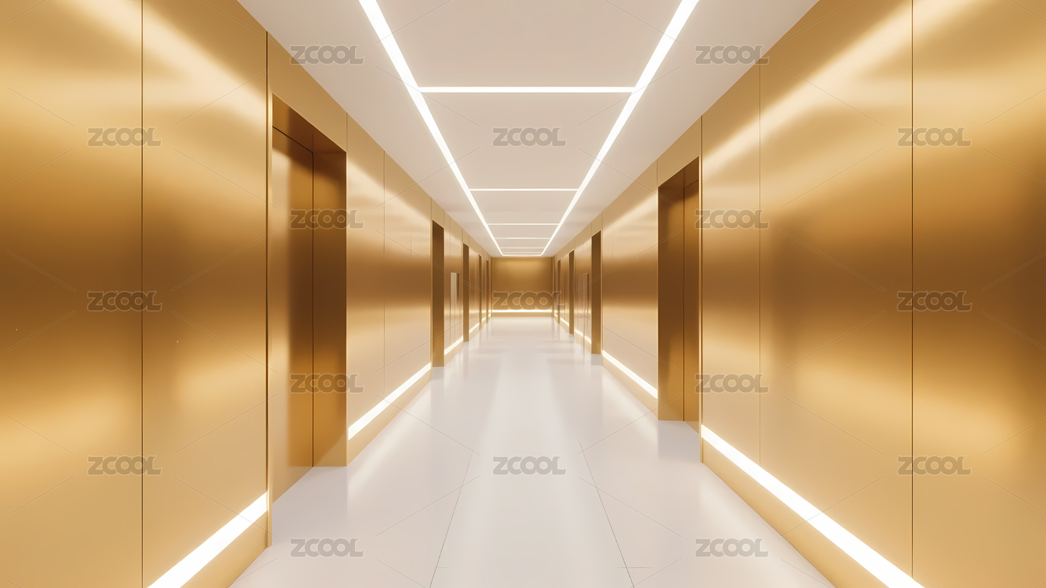 金色墙壁白色地板走廊