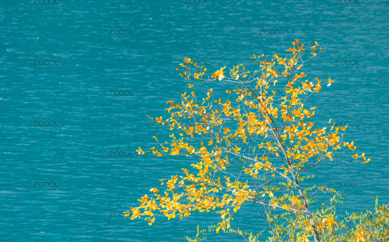 中国四川阿坝茂县松坪沟墨海边的彩林