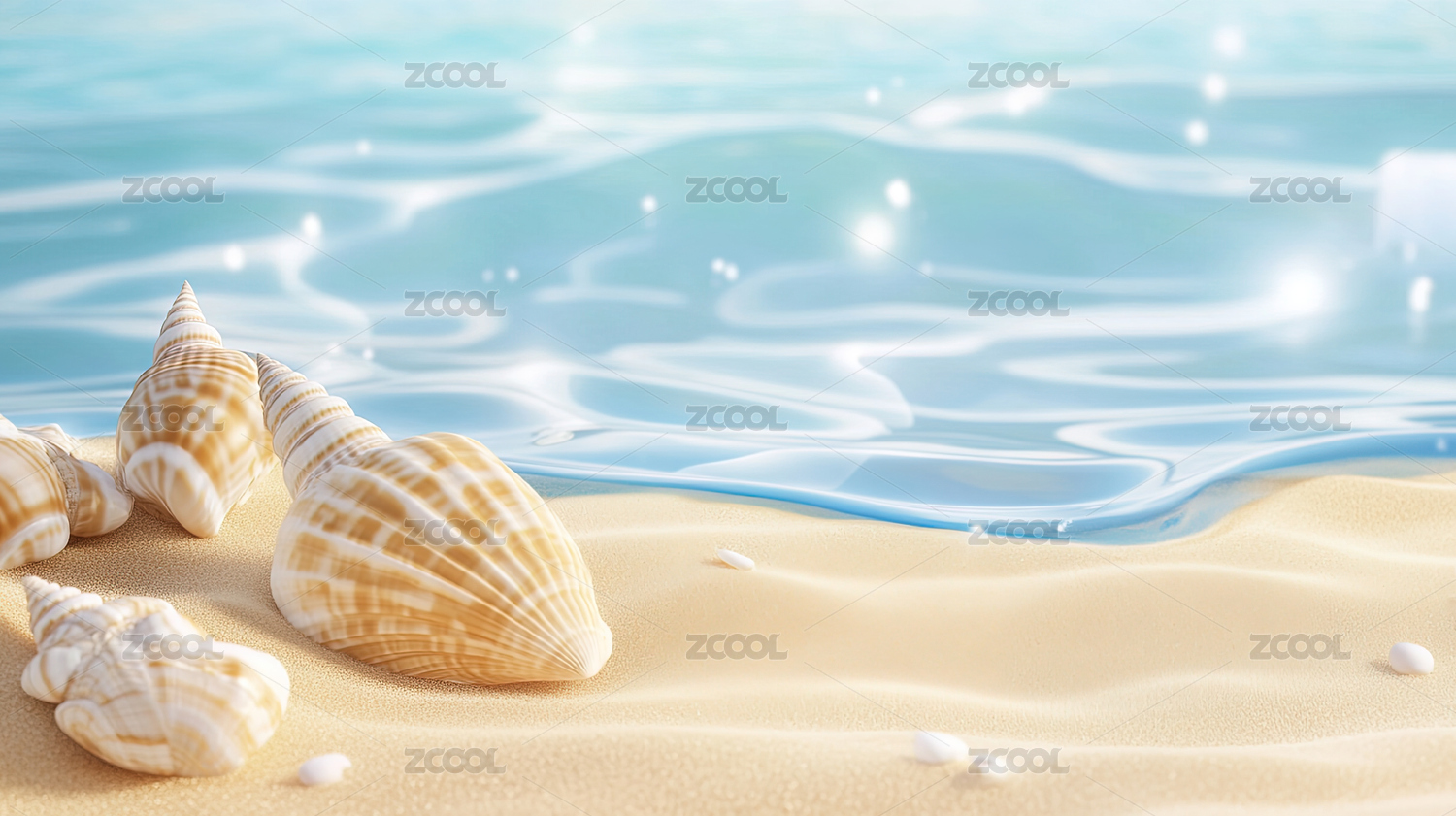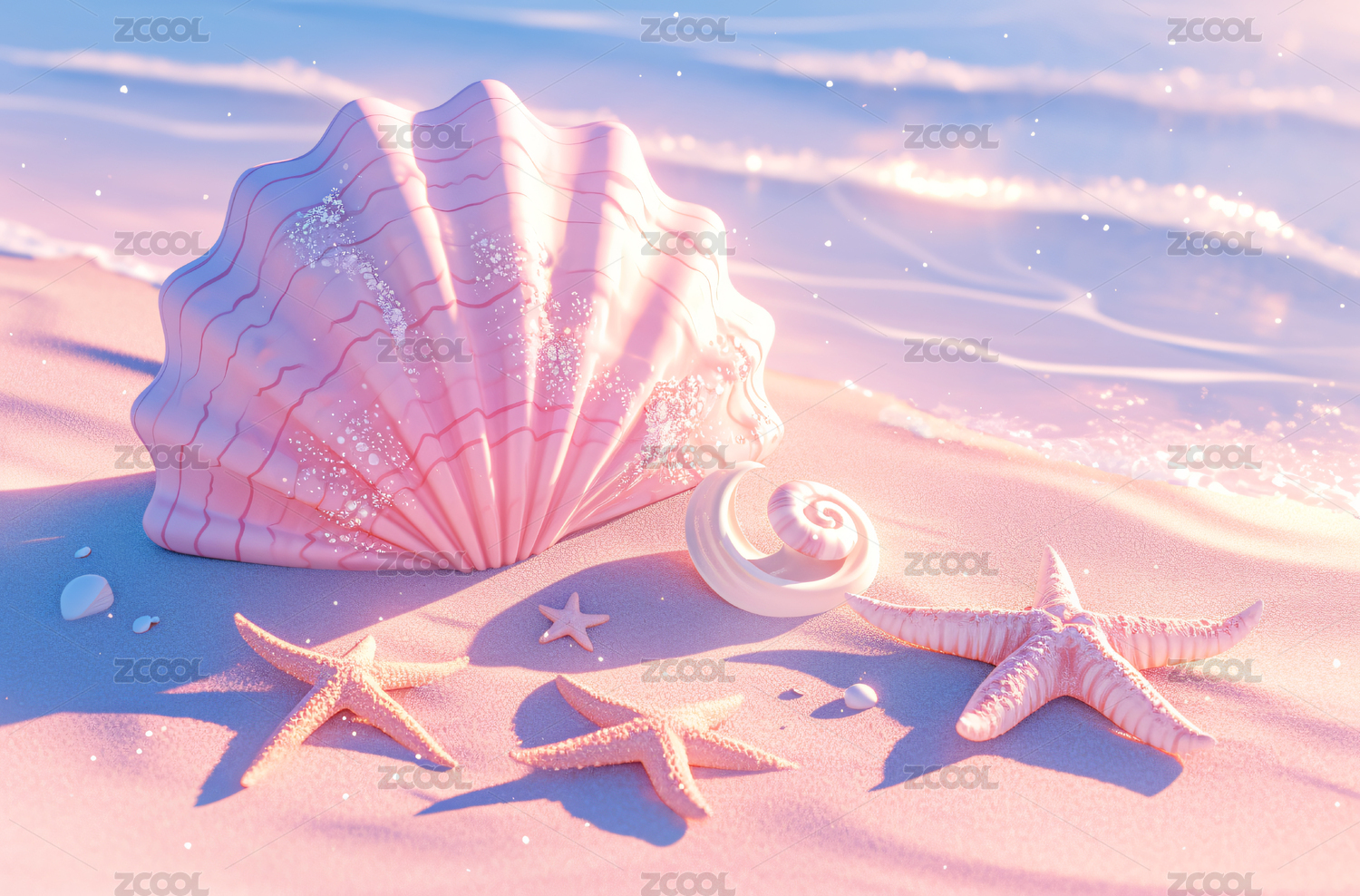 沙滩贝壳3D渲染美妆护肤时尚感背景