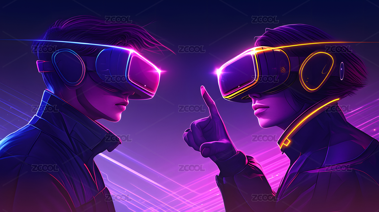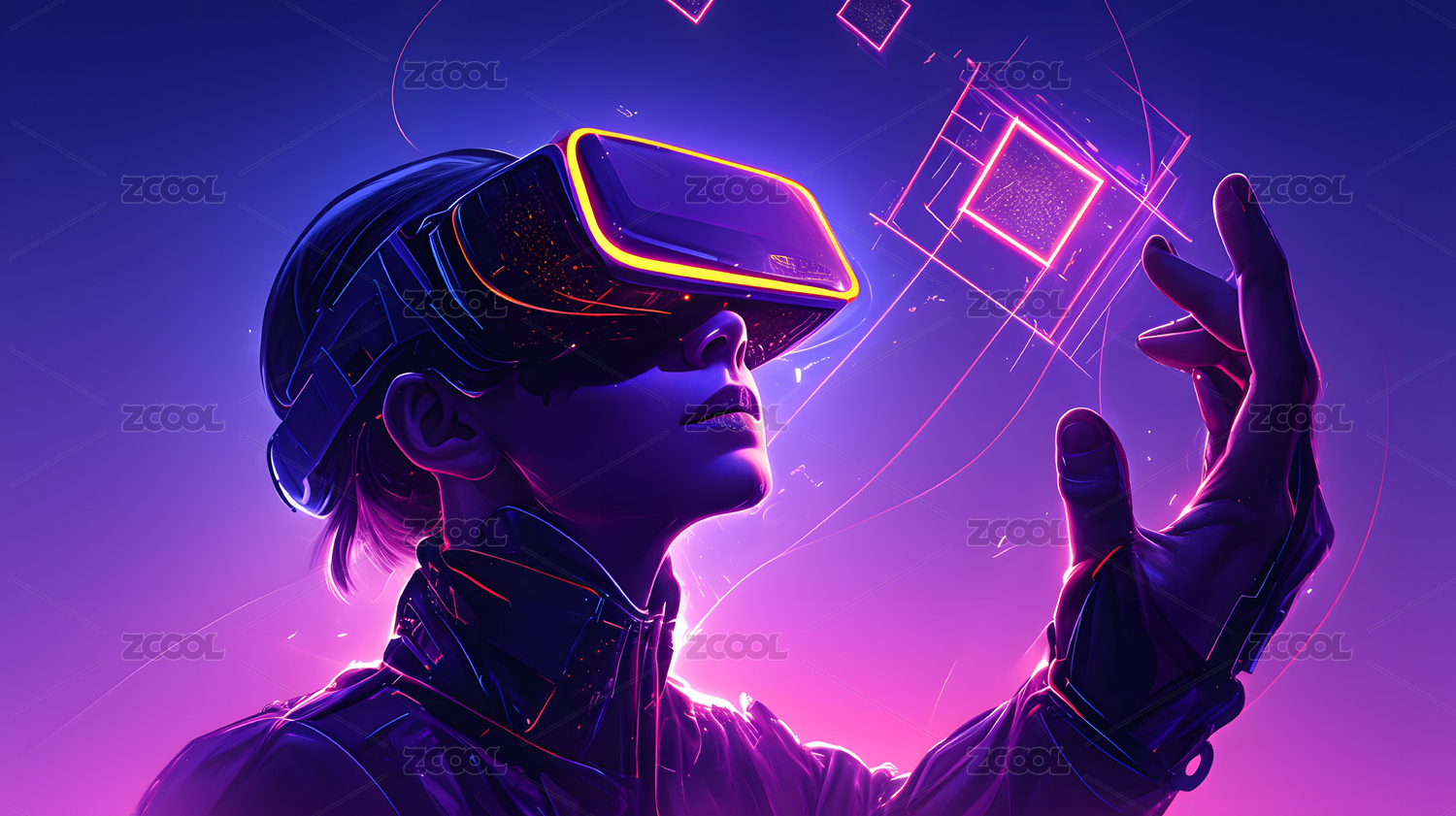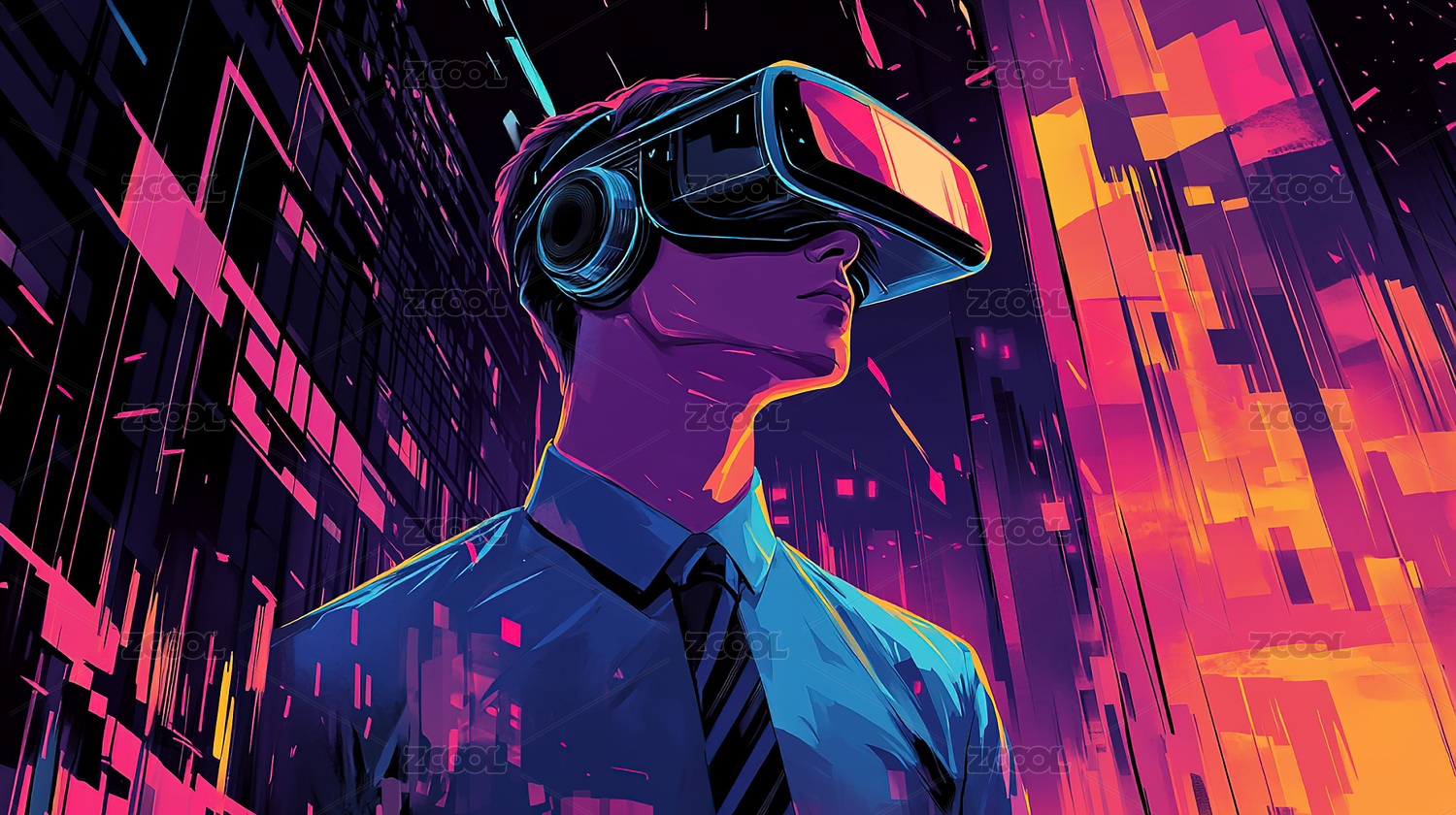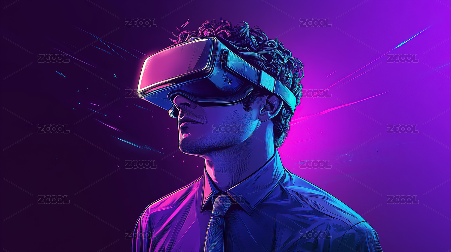 未来戴着VR眼镜的人物概念背景