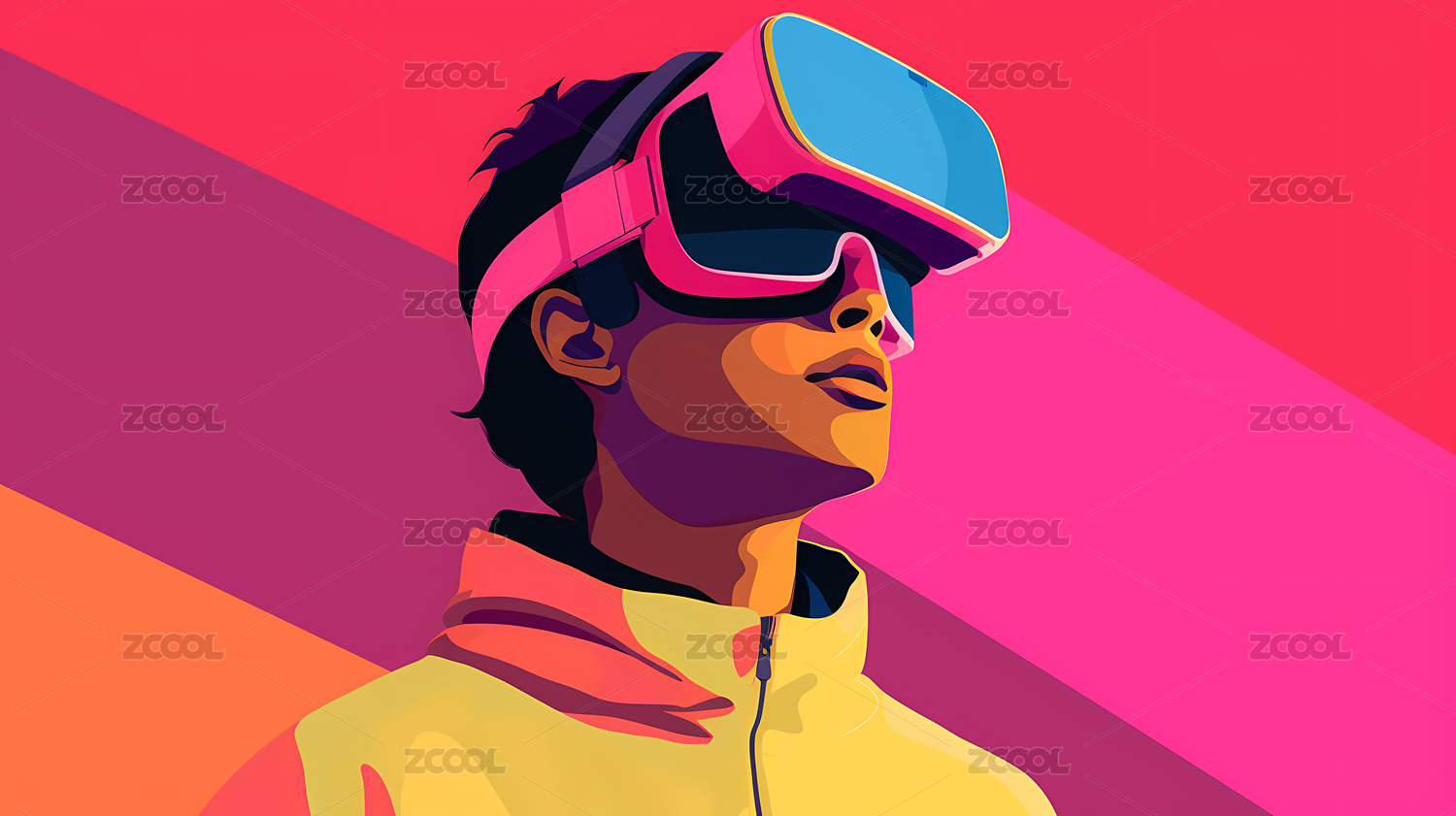未来科技男孩戴着VR眼镜手绘插画