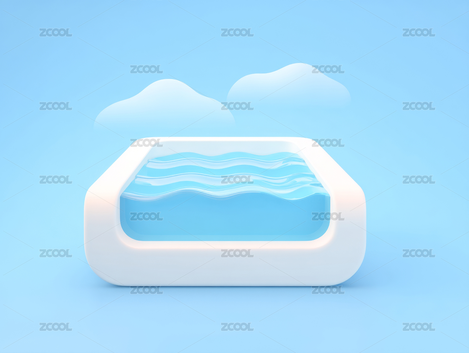 图像,三维图形,C4D软件,儿童,插画,卡通,游泳池,海滩遮阳伞,柔和,夏天