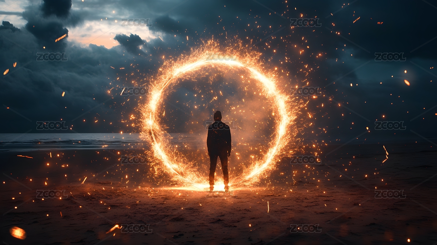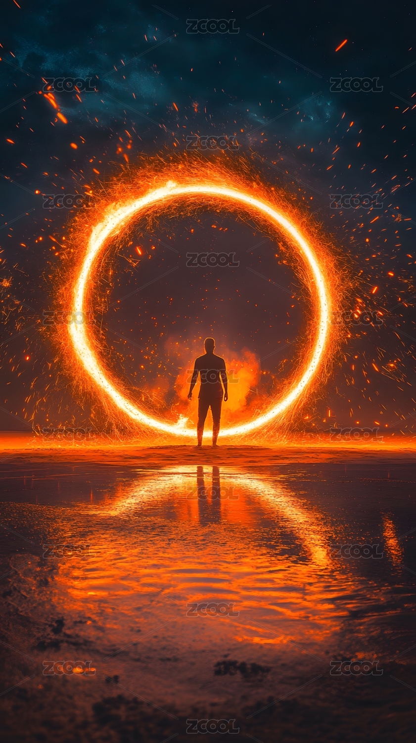 一个人穿过金色漩涡通道