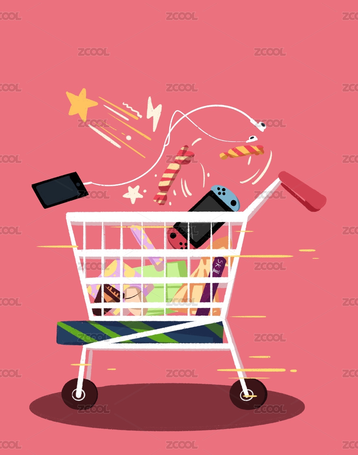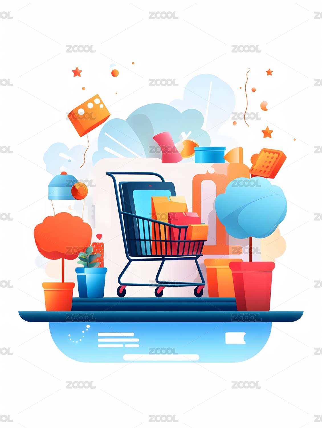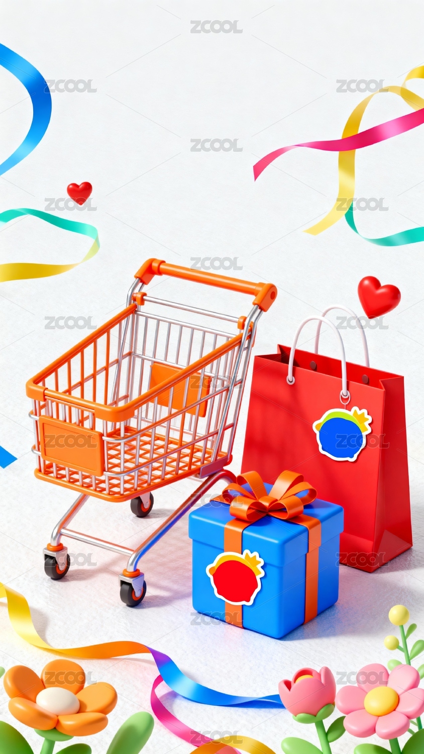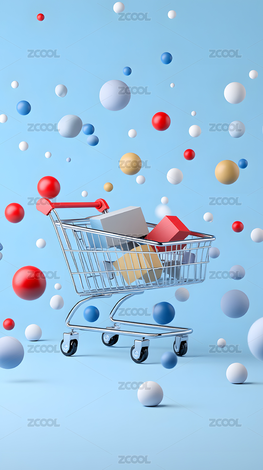 三维,立体,3D,渲染,购物,购物车,商品,家电,日用品,盒子
